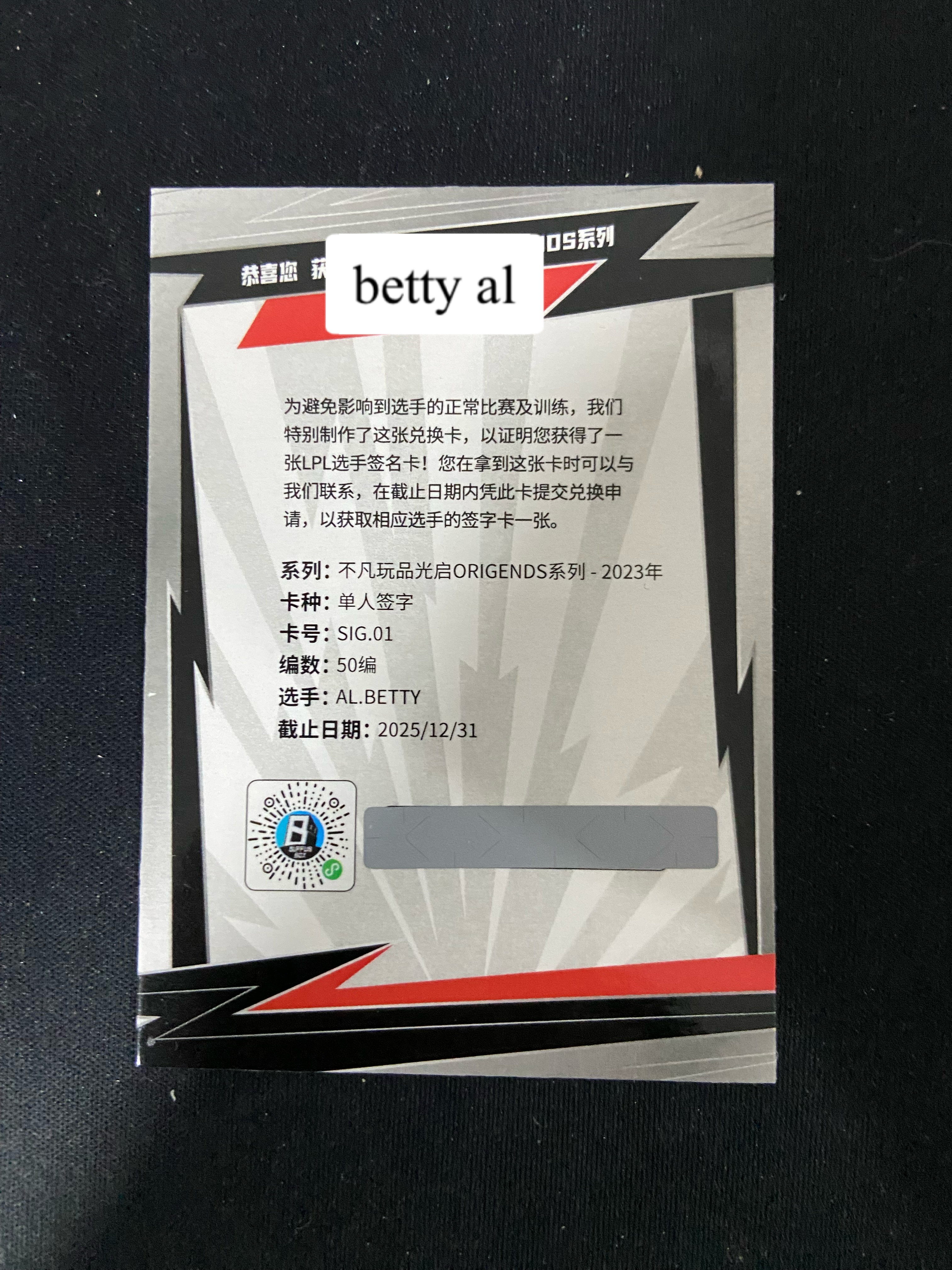 2022 Buffun LPL Betty 接代拍 单人签字卡 AL 金折 50编 不凡玩品 斗转星移 光启 英雄联盟 吉影
