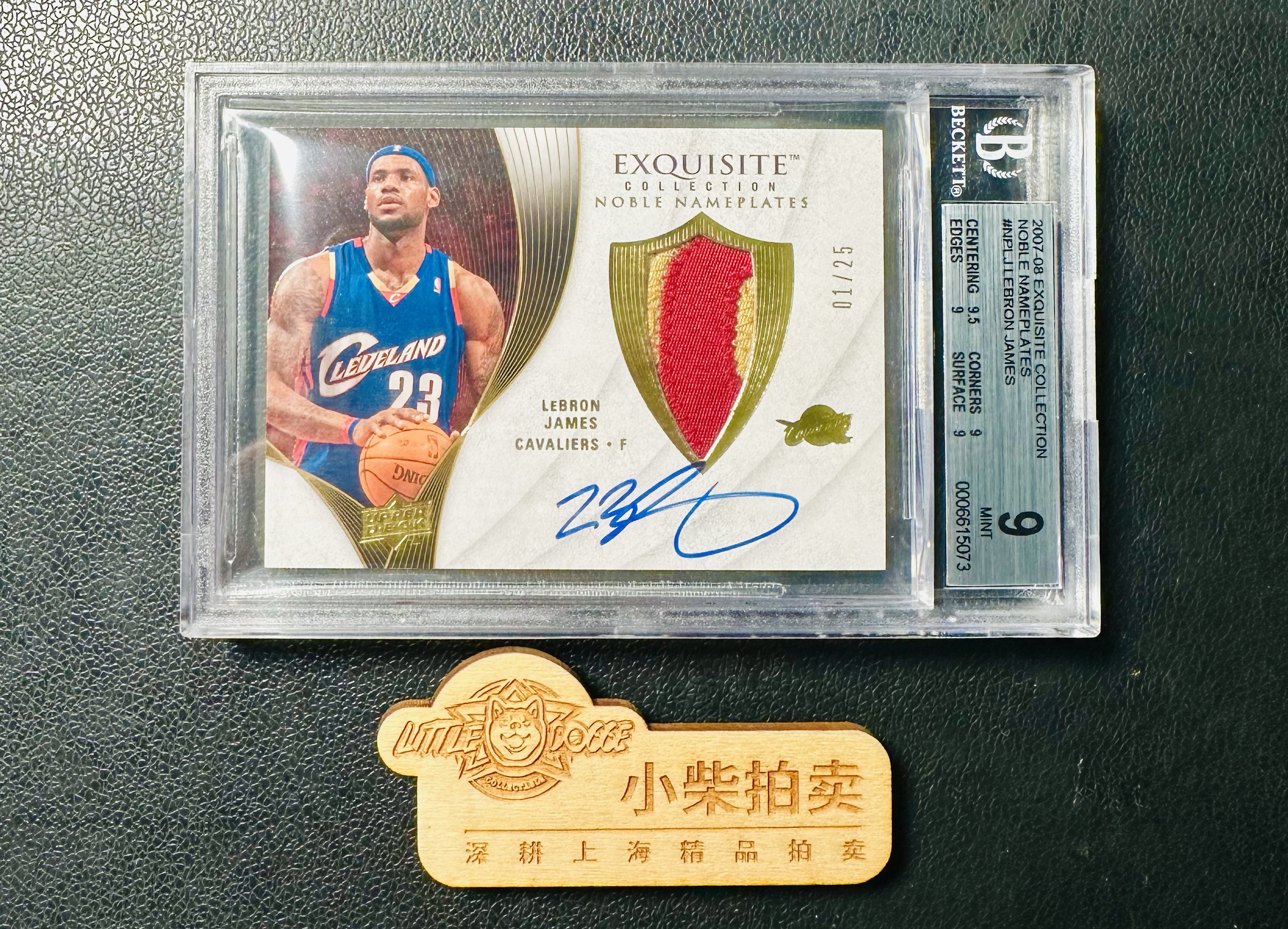 2007-08 Upper Deck exquisite LeBron James 【小柴拍卖】木盒 勒布朗 詹姆斯 卡签 签字 nn 小盾牌 patch 1/25 骑士暴力切割饱满bgs9 NG88