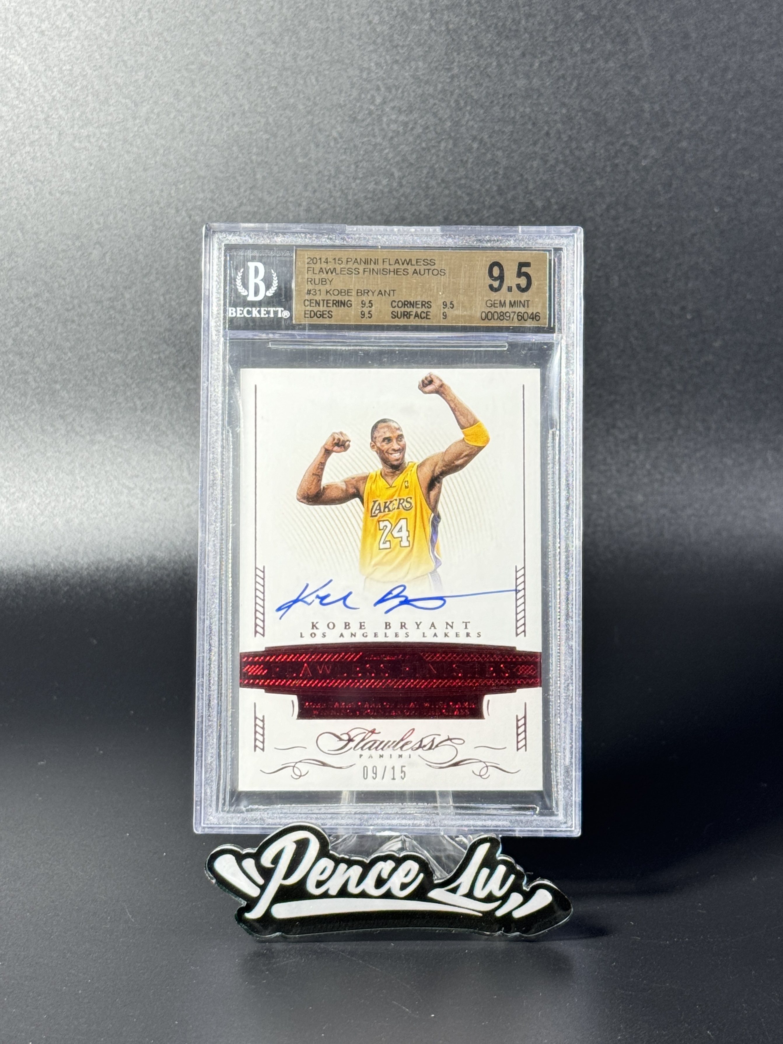 【喷子拍卖】2014-15 panini flawless Kobe Bryant 手提 洛杉矶湖人 科比 布莱恩特 元年绝杀 签字 15编 中国红 卡签 大hit卡 经典绝杀后庆祝选图 大热版本 墨迹超完美 BGS金标9.5/10 铜锣烧