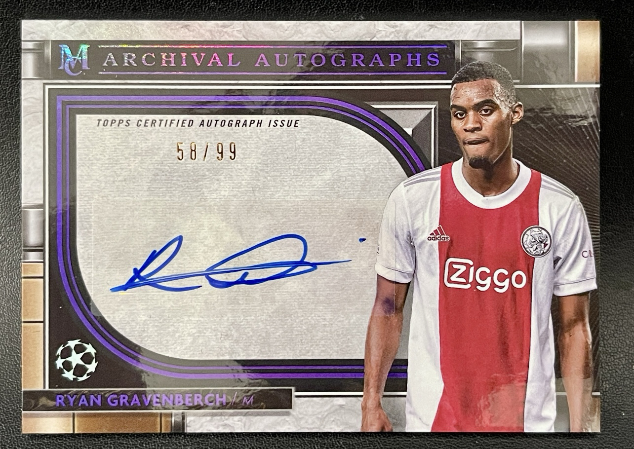 赫拉芬贝赫 2021-22 Topps 新秀RC 欧冠 58/99编 紫折 亲笔签名 蓝字 墨迹好看 阿贾克斯 利物浦 上赛季最佳后腰 大火新人 值得收藏!