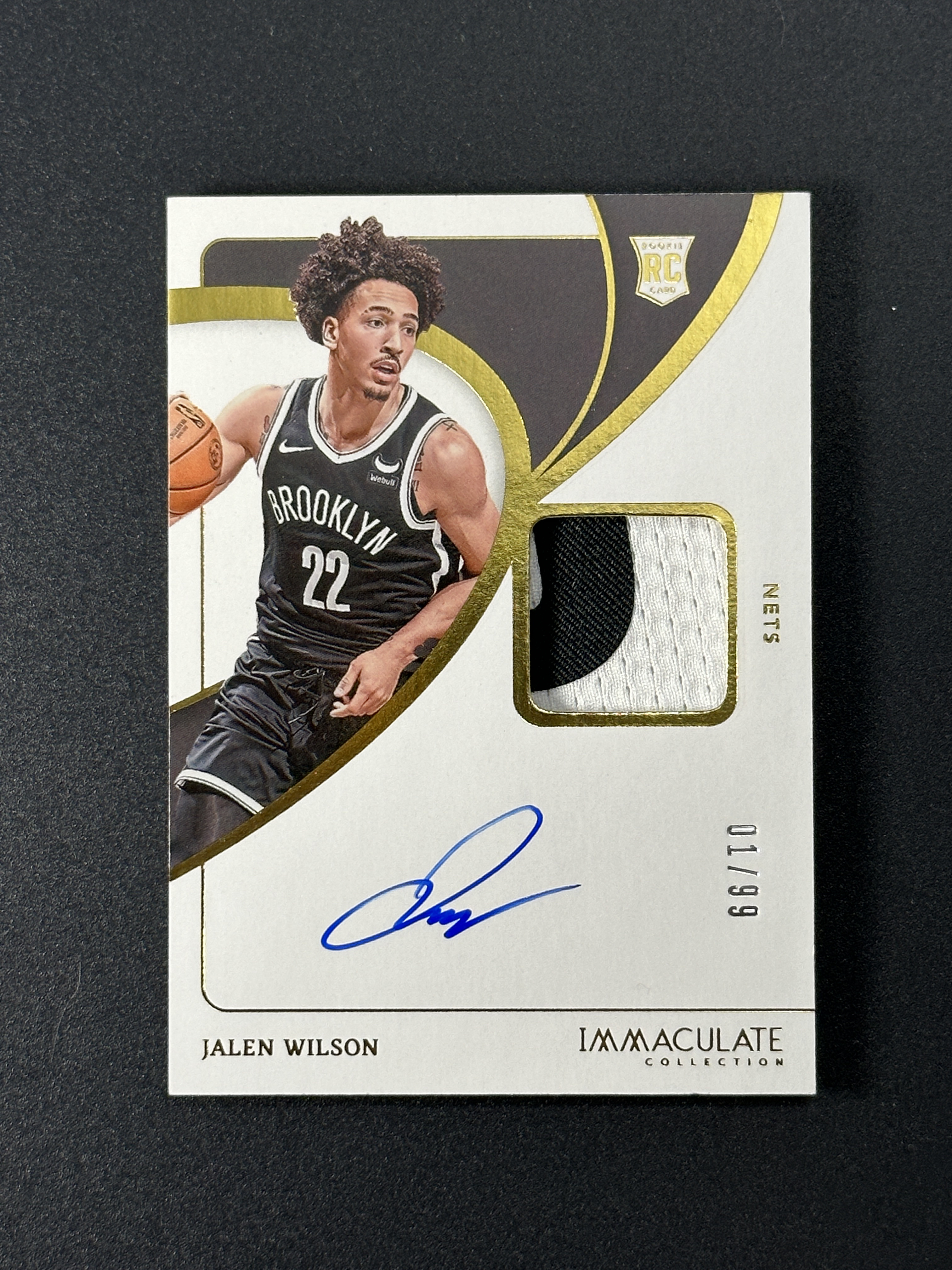 2023-24 Panini Immaculate Jalen Wilson RC 杰伦威尔逊 篮网 新秀 IMM 01/99编 首编 双色patch球衣切割 签字 卡签 rpa 微瑕如图-天