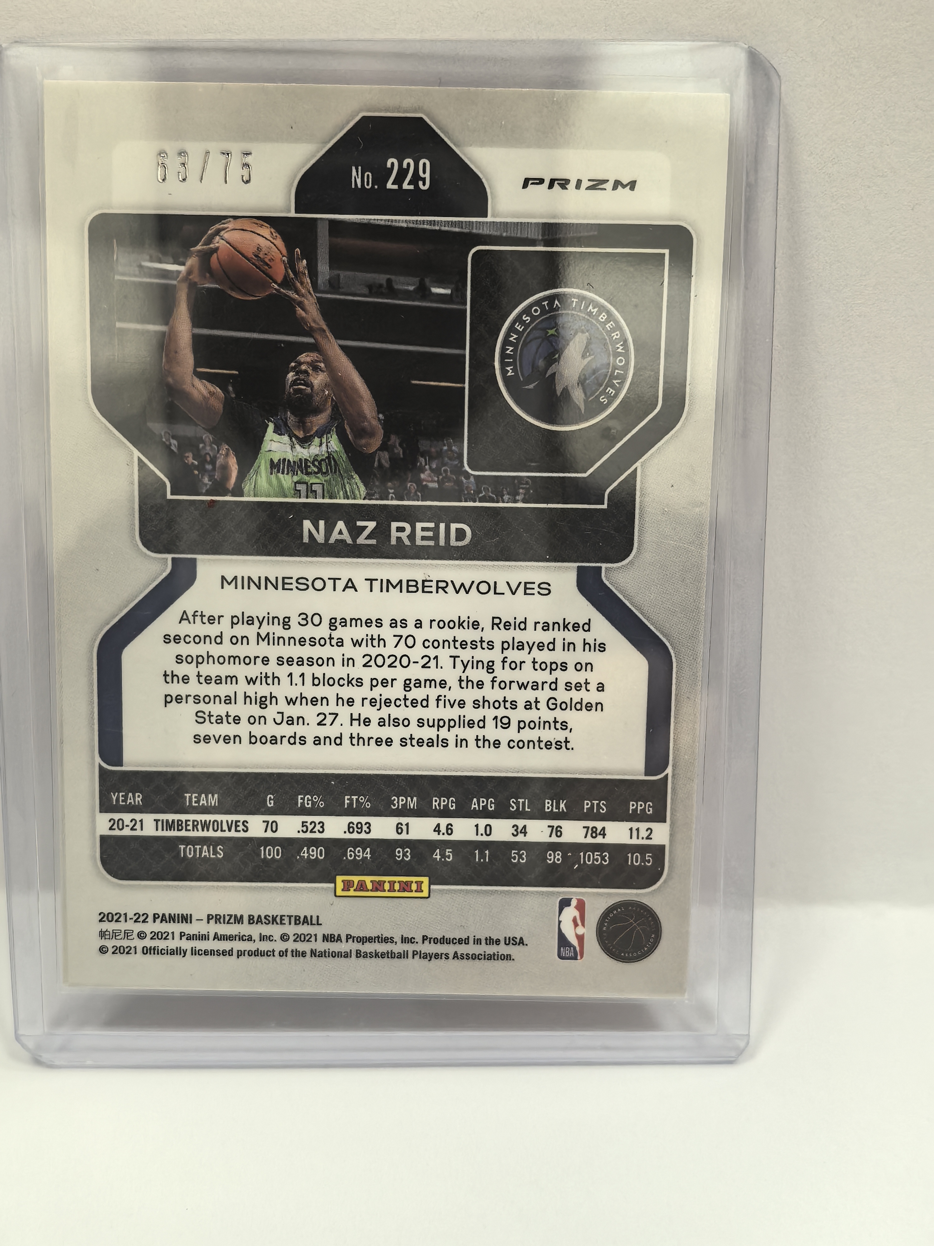 2021-22 Panini Prizm Naz Reid PZ 纳兹 里德 森林狼队 红钻石折 63/75编 卡品如图