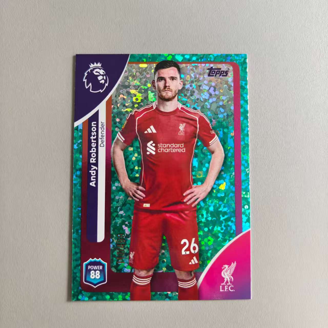 【德基拍卖】2025 Topps Premier Premium Soccer Andy Robertson 英超游戏版 利物浦 安迪 罗伯逊 青碎冰折 /499编 收藏必备 卡品如图 Ssm9-5