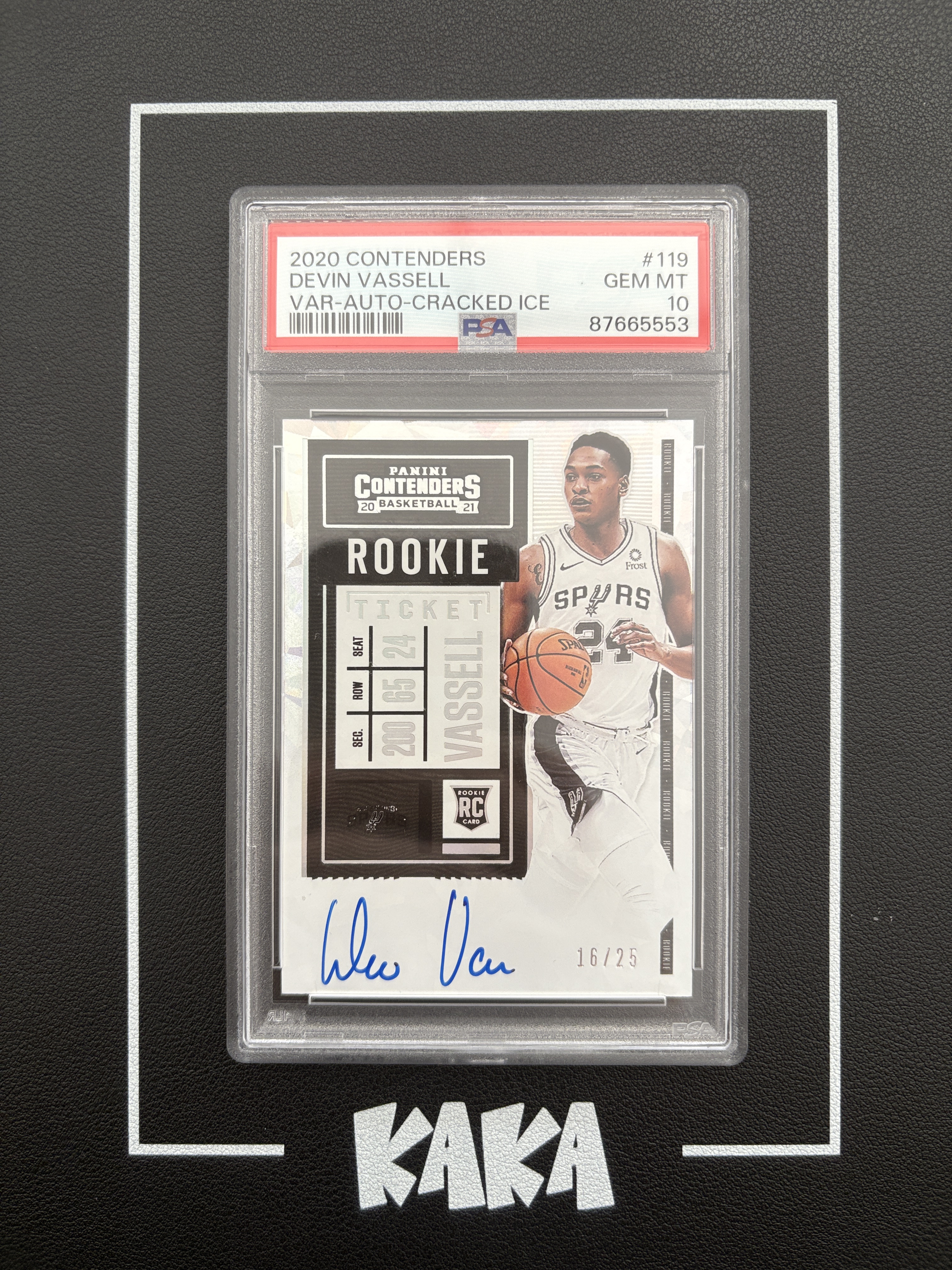 【KAKA】2020-21 Panini Contenders Devin Vassell 球票 马刺 RC 新秀 德文 瓦塞尔 /25编 卡签 碎冰折 折射 签字 PSA10分 完美卡品 K神
