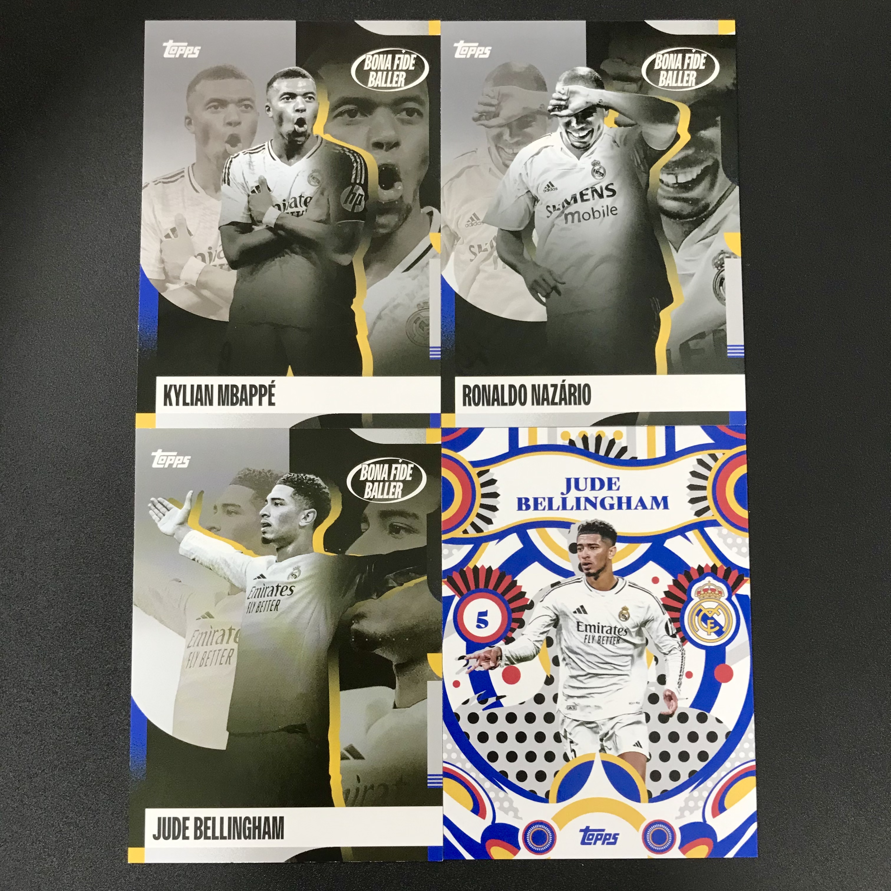 24-25 Topps皇马新队盒 贝林厄姆 君临天下选图 大罗 姆巴佩 四张真正球员特卡打包 三头海报风 怒吼庆祝双头特卡 街头艺术灵感 银河战舰 世界杯冠军法国 巴西传奇 万花筒 不保卡品
