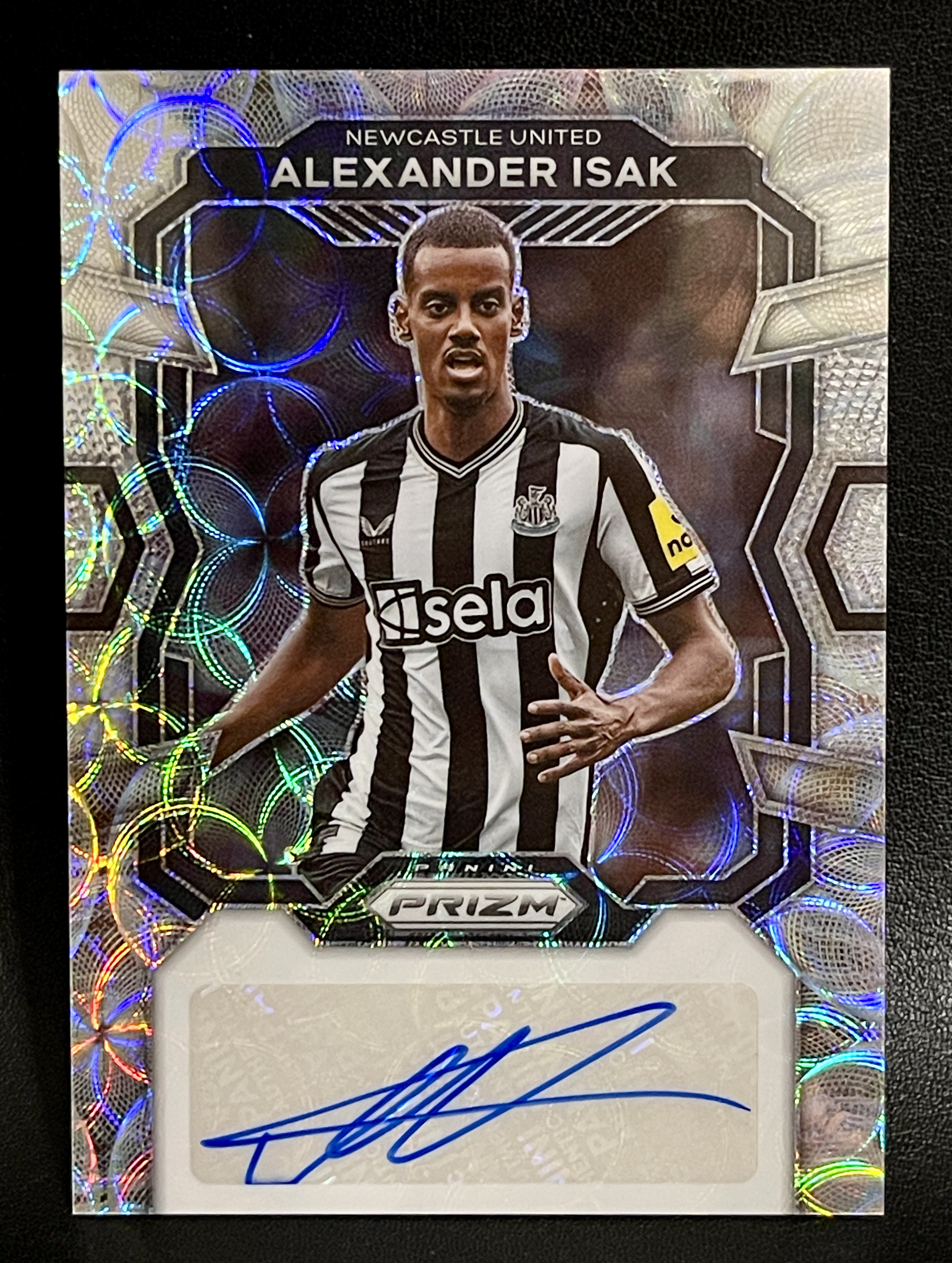 伊萨克 红军标王 2023-24 Panini Prizm 英超 银圈圈折 折射漂亮 亲笔签名 蓝字 墨迹非常漂亮 纽卡斯尔 利物浦 瑞典 伊布接班人
