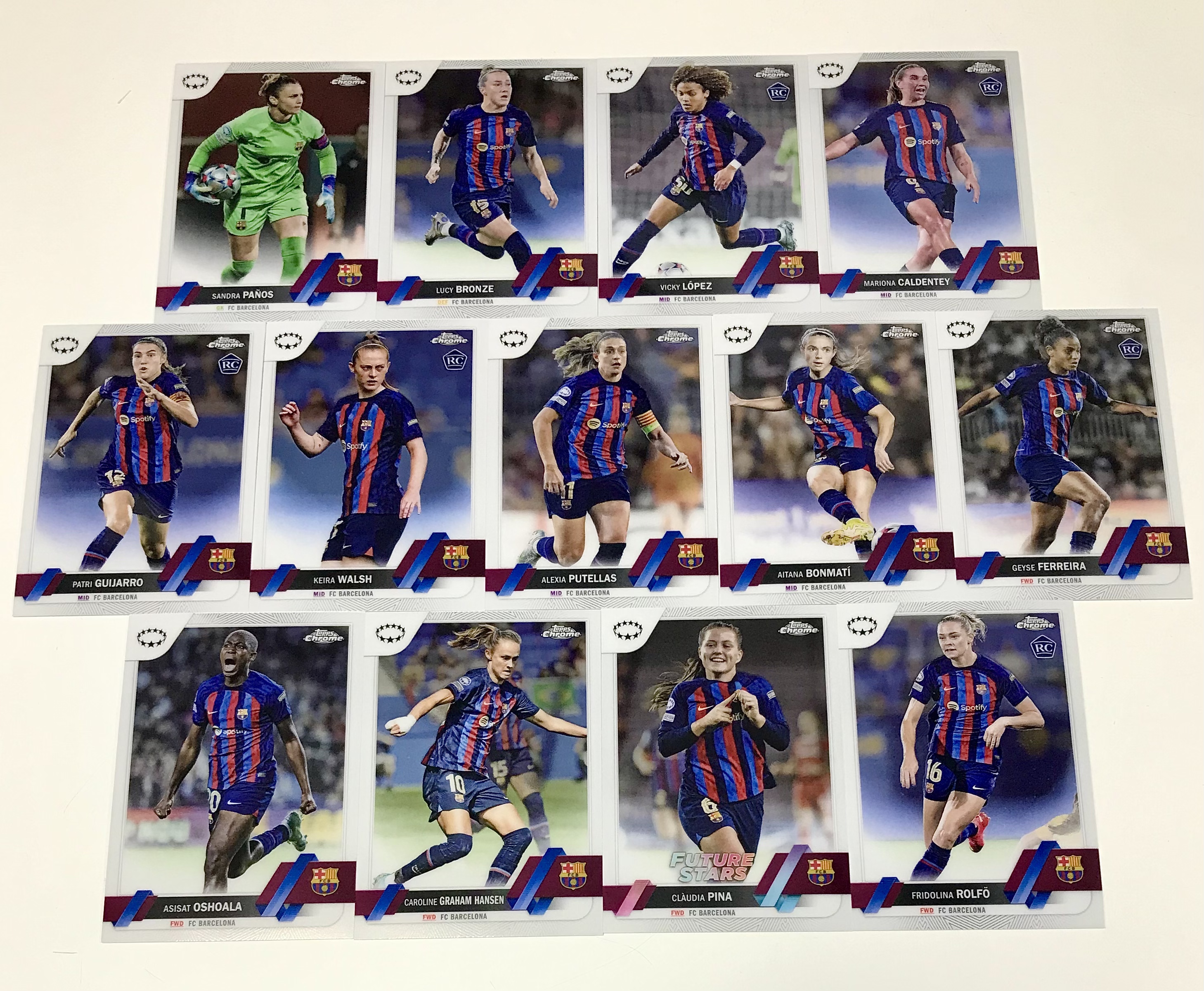 22-23 Topps Chrome女足欧冠tc 巴塞罗那队长 普特拉斯 Bonmati邦马蒂 皮娜 帕约尔 汉森 沃尔什 洛佩兹 等13张齐欧冠冠军队套打包 巴萨女梅西 蝉联金球奖得主 卡品如图