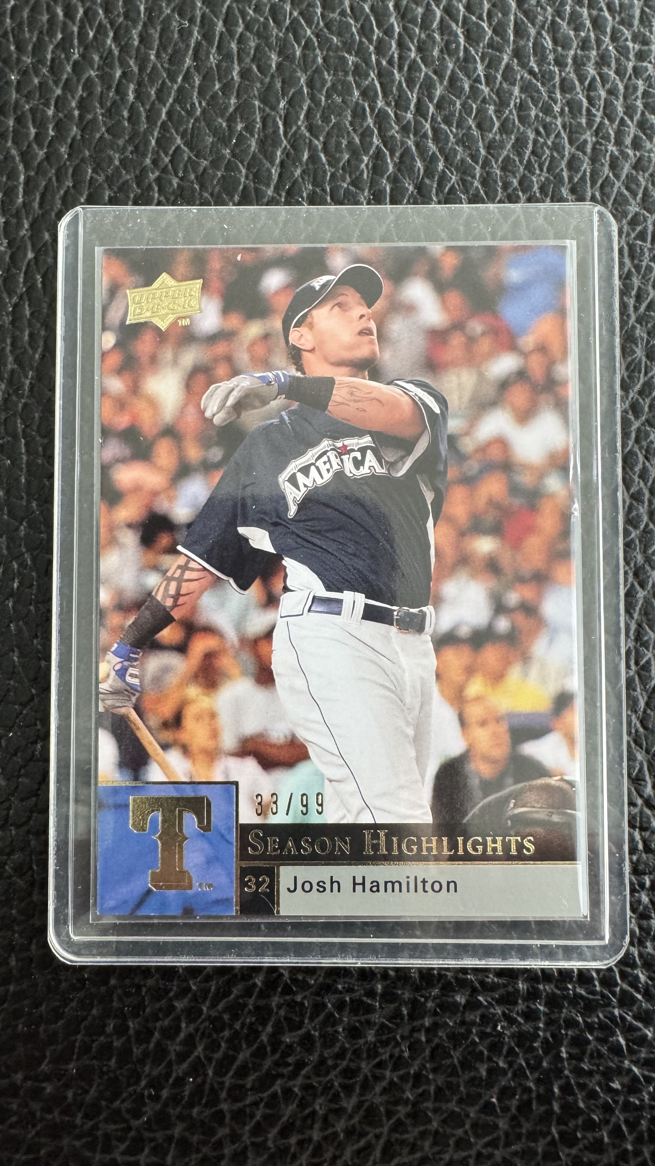 2009 Upper Deck Series 1 Josh Hamilton 约什汉密尔顿 1999状元 5次全明星 3届银棒奖 第16位达成单场4支本垒打 限量/99编 金字 卡片稀有 值得收藏