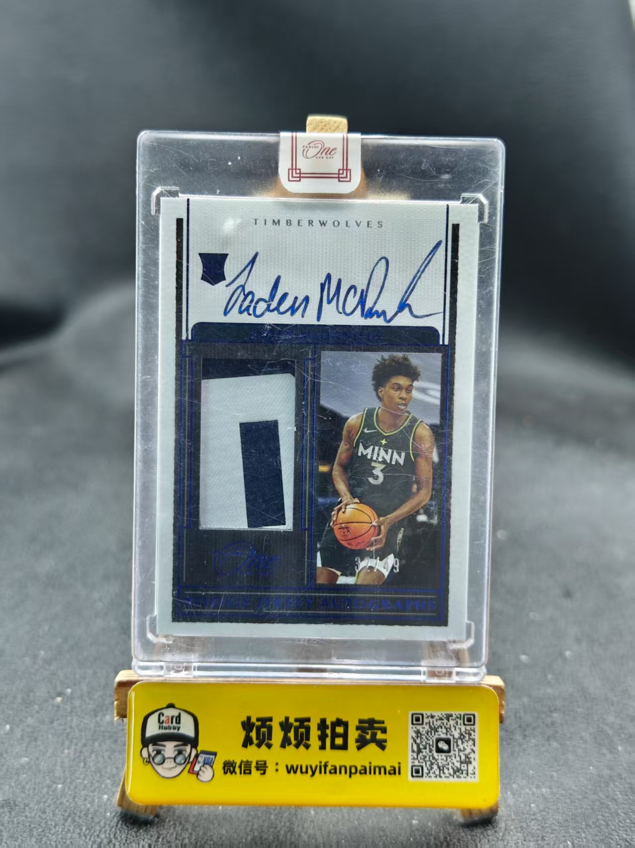 2020-21 Panini one Jaden McDaniels 【烦烦拍卖】森林狼 杰登麦克丹尼尔斯 新秀RC 签字卡签 球衣物料 RPA 蓝平行 32/49编 原封砖 收藏必备【神豪】T4