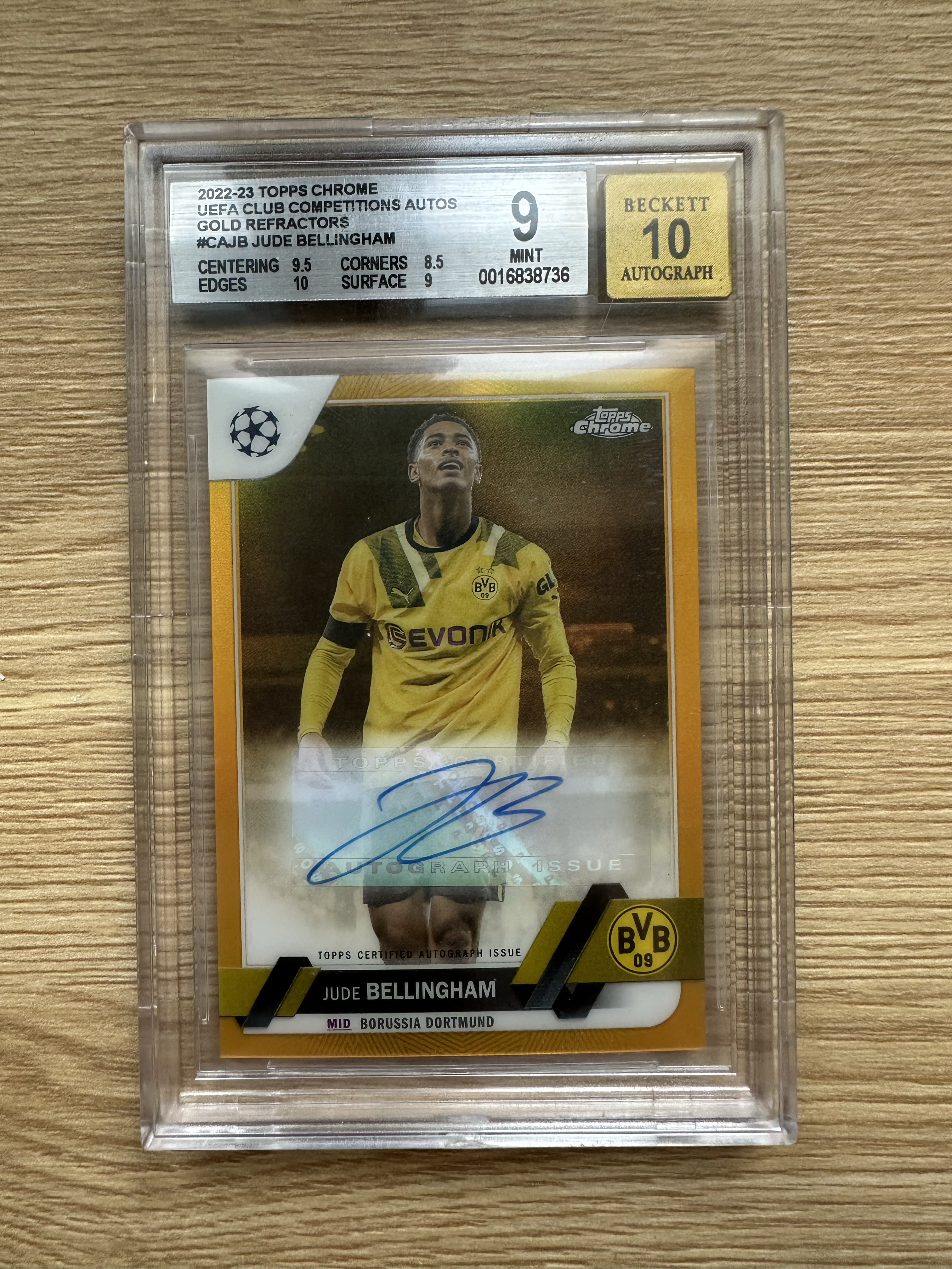 2022-23 Topps Chrome Jude Bellingham 贝林厄姆 37/50编 TC 金折 签字 皇马中场核心 大英帝星 BGS 签字 金10 实卡超美 收藏投资 卡品如图