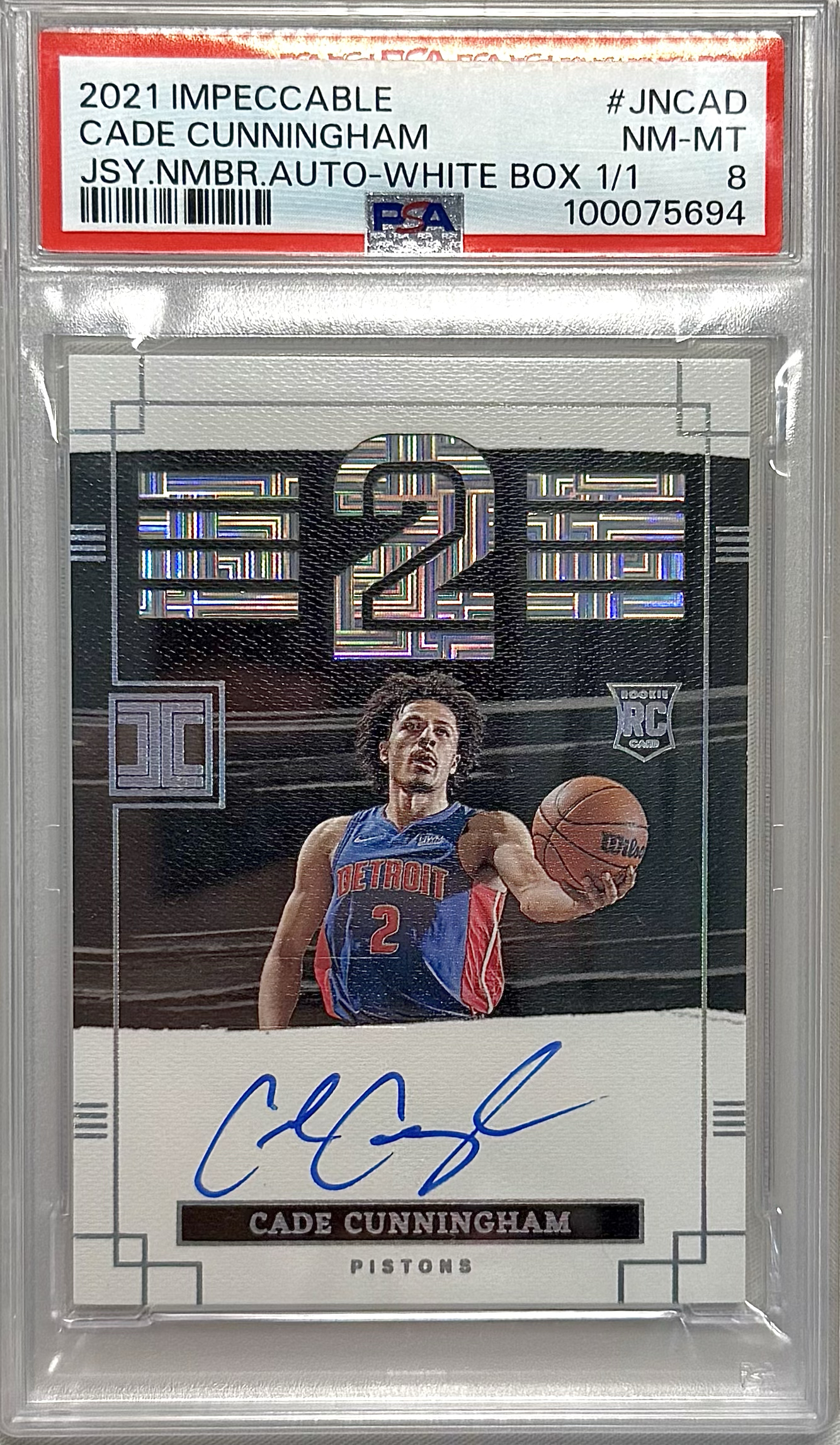 2021-22 帕尼尼 Impeccable Cade Cunningham RC 【麦考拍卖】新秀RC 卡签字签名卡 2同背号编数据签 活塞二阵全明星 CC坎宁安 🐲PSA8高分+白盒1/1编🐲