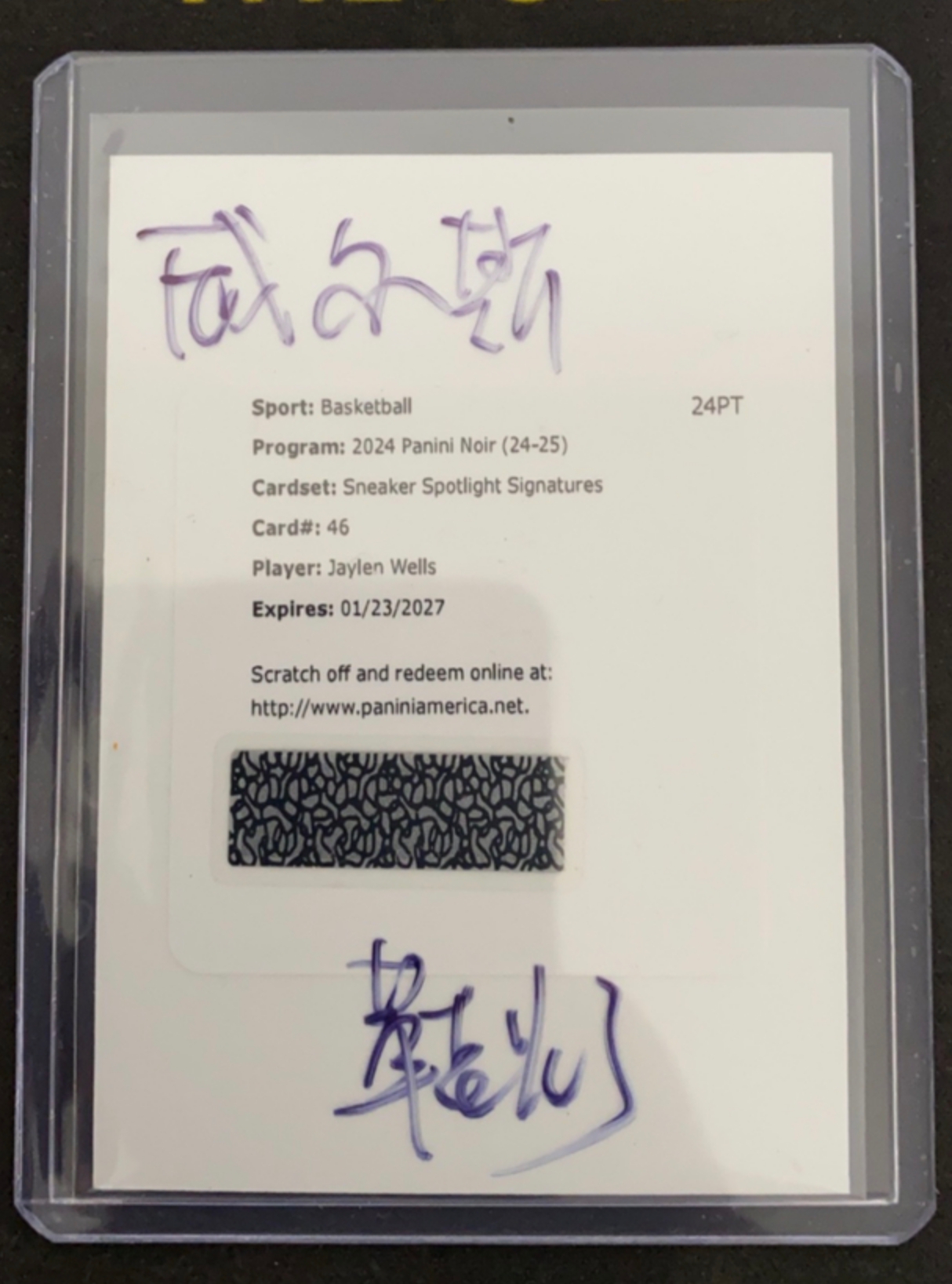 【金矿卡社】2024-25 noir 诺尔 sneaker spotlight 鞋灯 聚光灯 灰熊新秀rc 杰伦威尔斯 jaylen wells 卡签签字 /99编无平行博首尾编同背 交换板 叶金