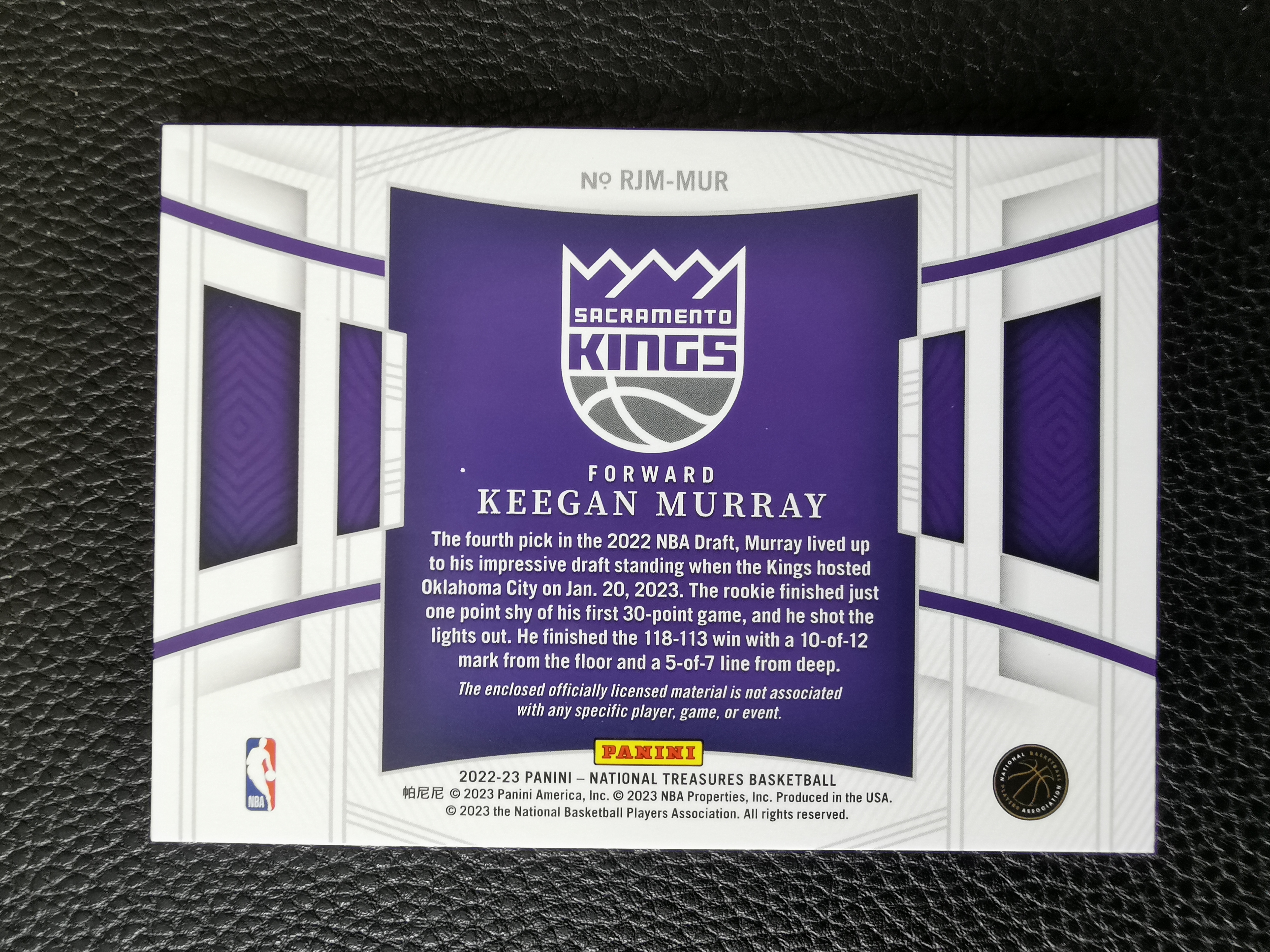 【金矿卡社】2022-23 国宝 national treasures 国王新秀rc 基根默里 keegan murray 穆雷 暴力大窗三色球衣字母切割 patch 19/25编 背细线 浦银