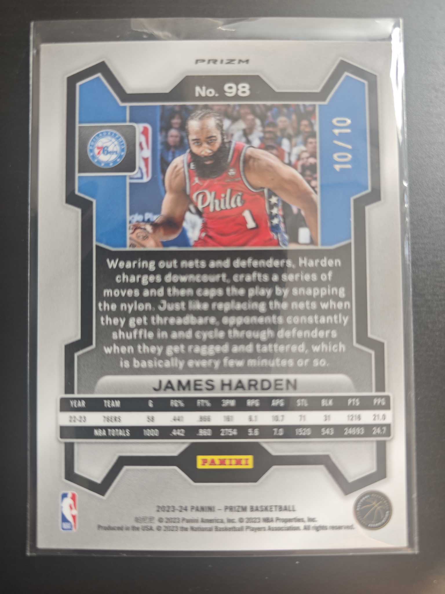 2023-24 Panini Prizm James Harden 快船 76人 大胡子 詹姆斯 哈登 金折 金shimmer折 10编 10/10 尾编 超低编 收藏必备