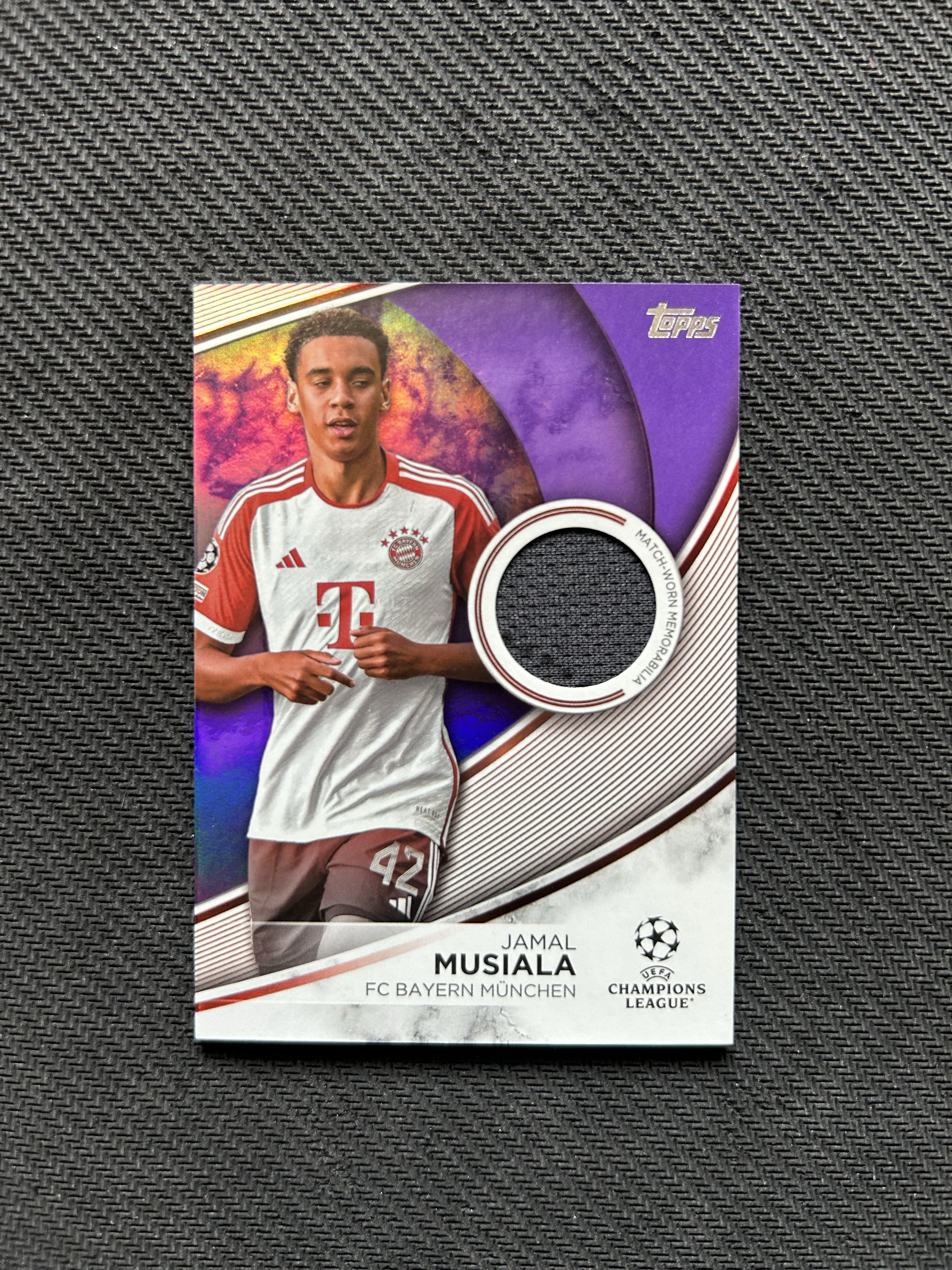 2023-24 Topps Chrome Jamal Musiala 欧战UCC 穆夏拉 299编 紫折 物料 球衣切割 拜仁慕尼黑 德国 中场核心 天赋兑现 小鹿 实卡精美 专收凑套必备 卡品如图!