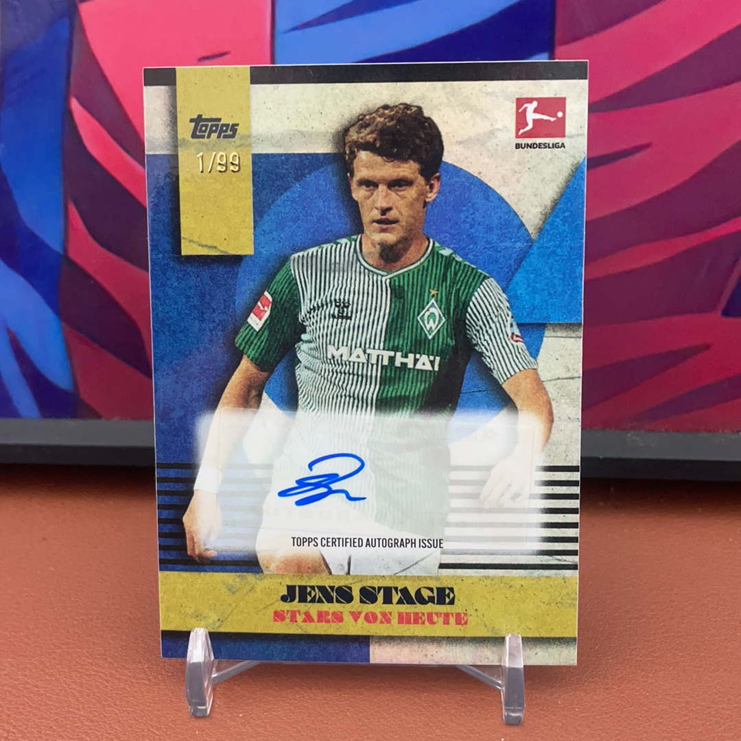 2024 Topps 德甲60周年 Jens Stage 斯特奇 1/99 首编 完美 签字 丹麦 云达不莱梅 未来可期 收藏品 卡品如图(lzy)通品 拍前看描述
