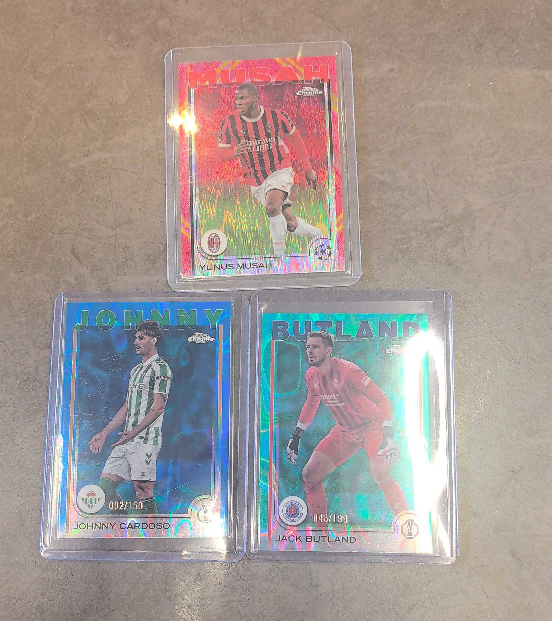 杰克 巴特兰德 199编 150编 2024-25 Topps Chrome 绿折 欧冠TC JACK BUTLAND 格拉斯哥流浪者 米兰 贝蒂斯 一图打包 3张lot 红包折 蓝折 青折