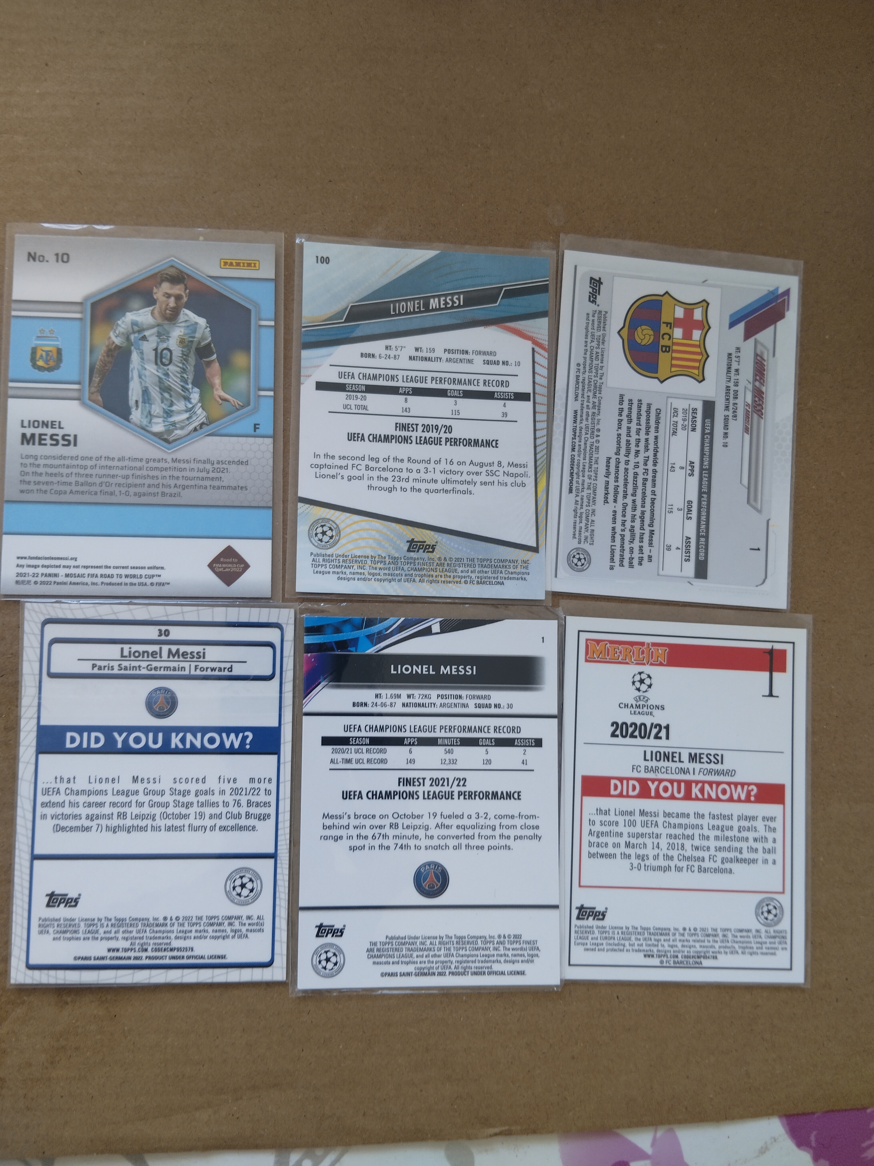(竞拍前先阅读描述)topps 帕尼尼 各系列 梅西普卡6张 打包实卡精美收卡必备
