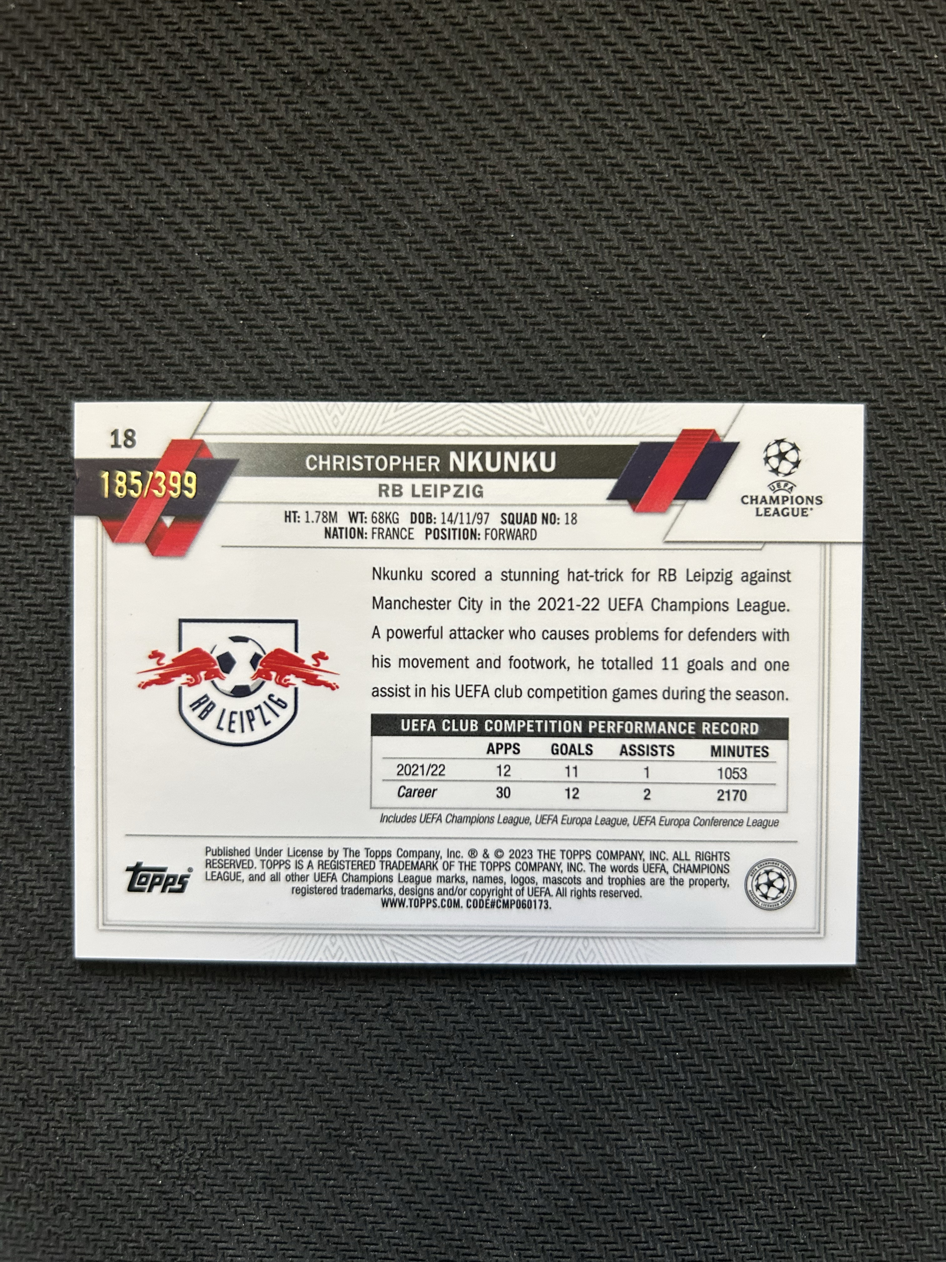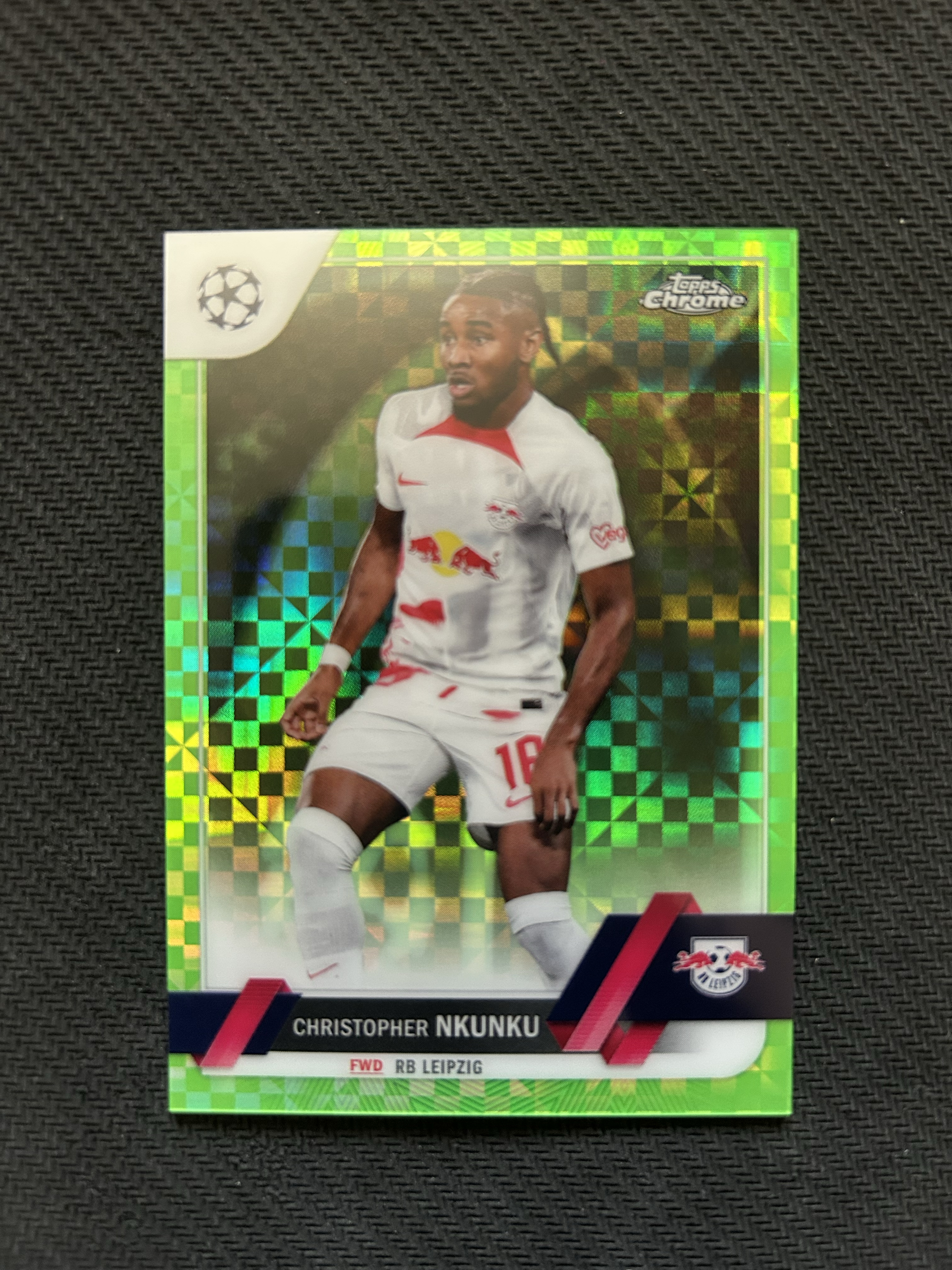 2022-23 Topps Chrome Christopher Nkunku 欧战 TC 恩昆库 399编 绿格子折 莱比锡红牛 切尔西 AC米兰 法国 前锋 实卡精美 专收凑套必备 卡品如图!
