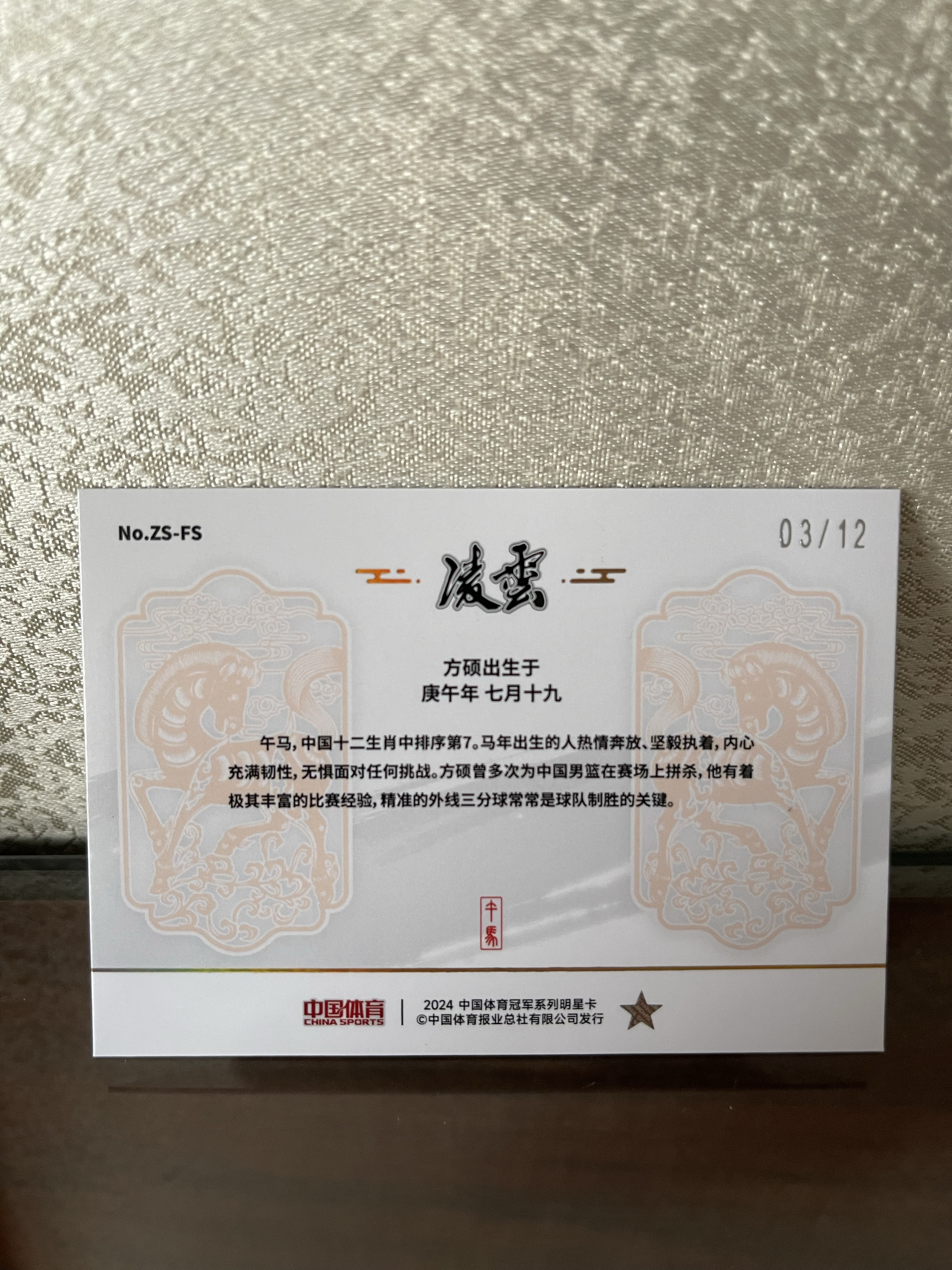 2024 奇卡 中国体育 凌云 零售版 中国男篮 方硕 12编 生肖签 折射 签字 卡签 大比例 单一平行 03/12 稀有 卡品如图 值得收藏 实卡美丽