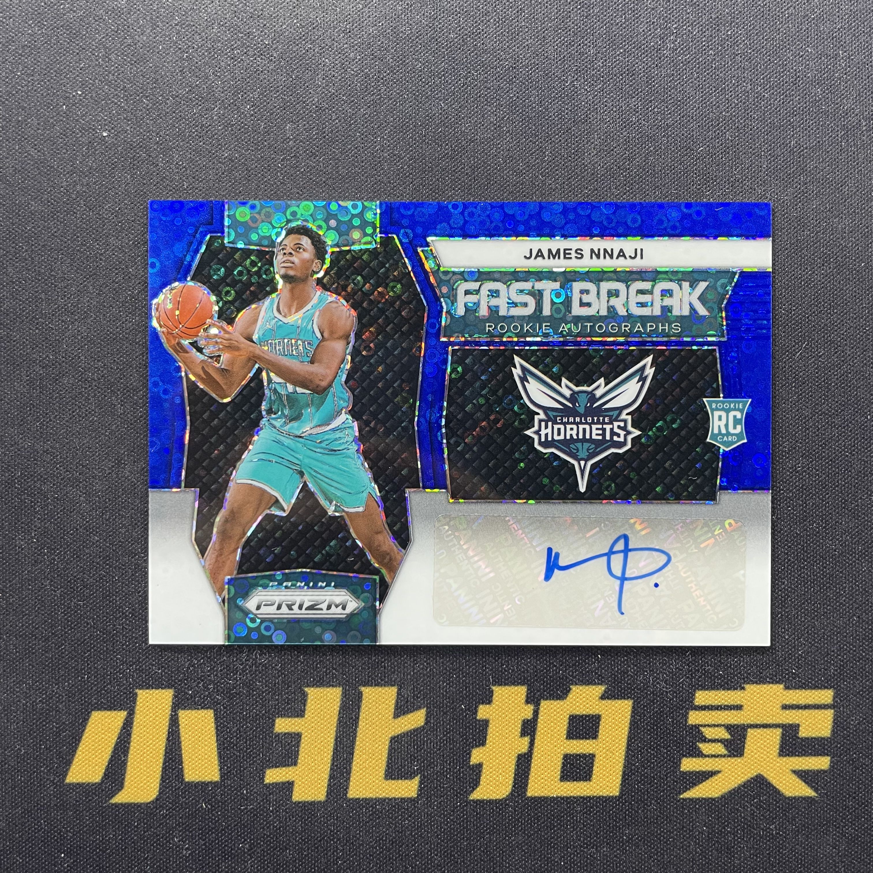2023-24 Panini Prizm James Nnaji RC 【小北拍卖】J1 黄蜂 詹姆斯 纳吉 PZ 新秀 签字 快攻签 蓝泡泡折 49编 瑕疵见图 枸杞-347#