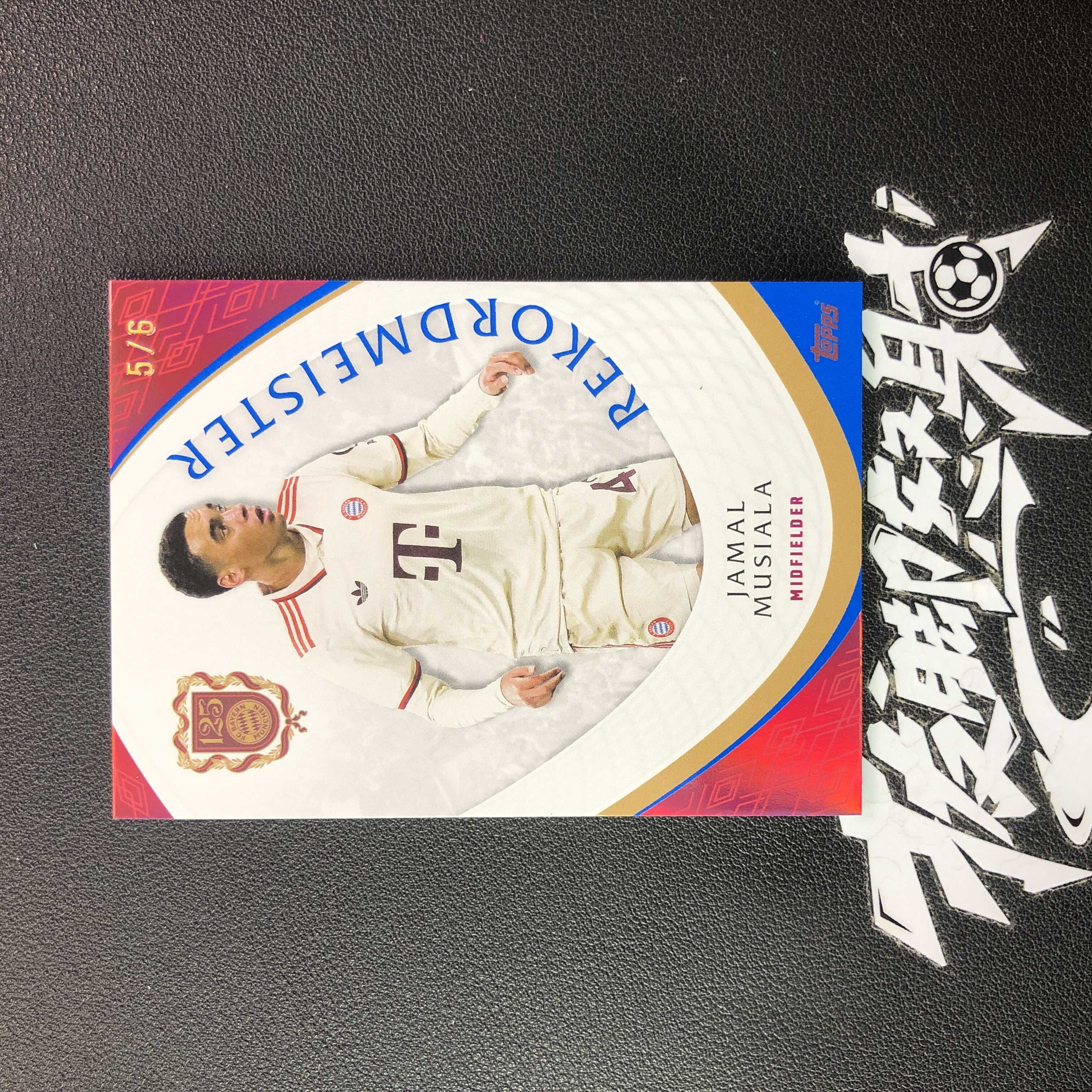 【怒射拍卖 接代卖】拔脚正义U1 2025 Topps 拜仁125周年高端队盒 Jamal Musiala 穆夏拉 拜仁 冠军记录 5/6编 蓝平行 多图已拍仔细看图顺丰