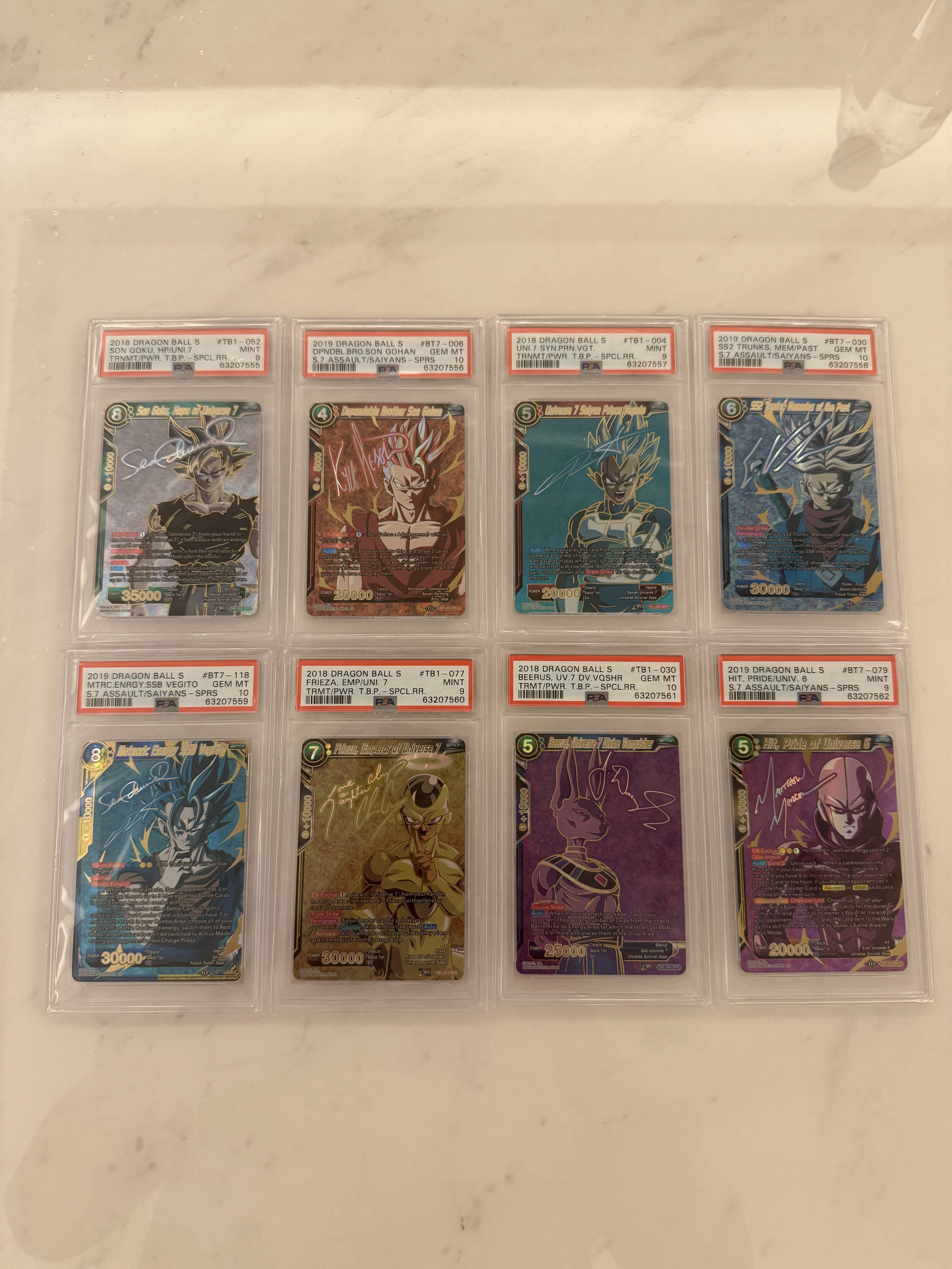 2018-19 龙珠超 Dragon ball super 美版 Signature 声优签字卡 P9/10全套 8连号 悟空 悟饭 贝吉塔 特兰克斯 悟吉塔 弗利萨 比鲁斯 希特