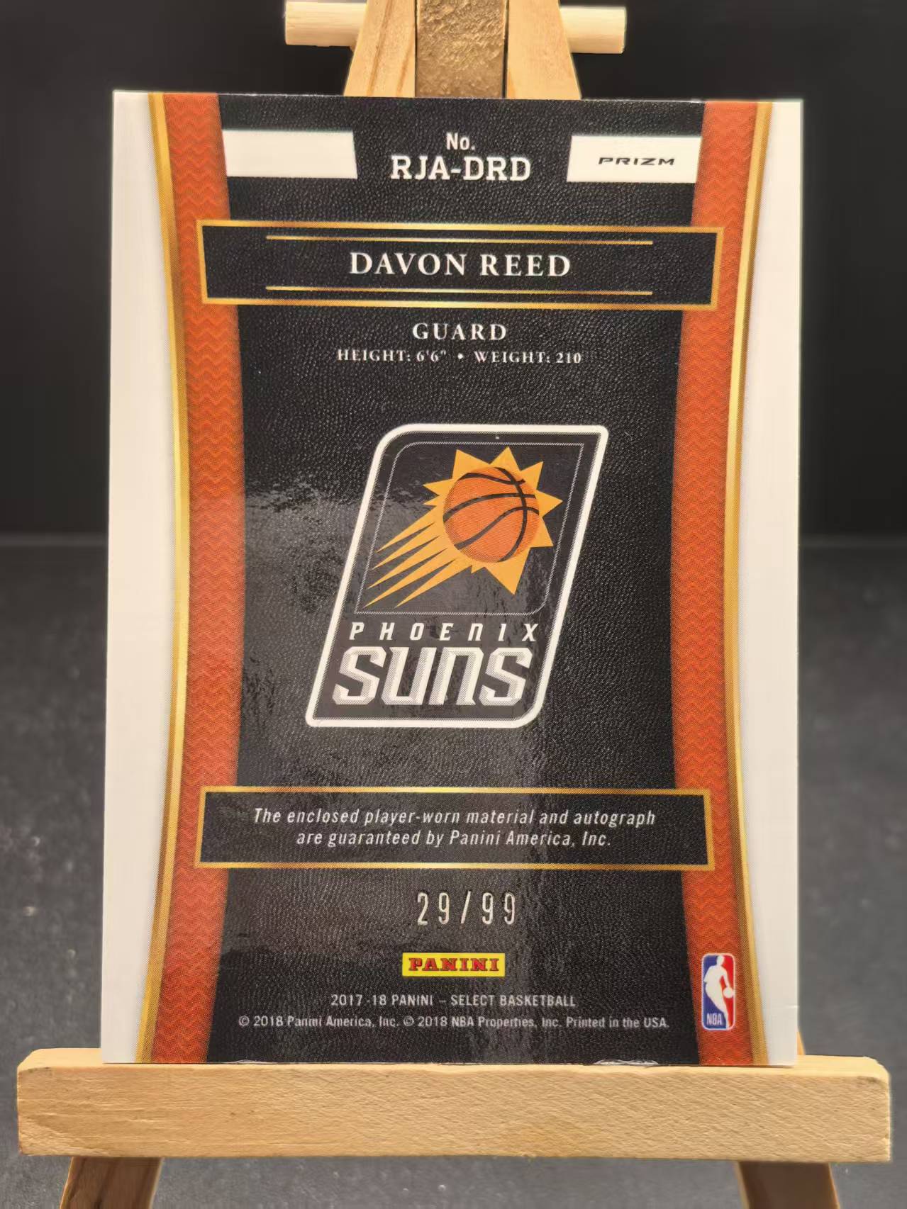 2017-18 Panini Select Davon Reed 舟 太阳 达文 里德 JA 签字 99编 球衣 微白边角090812(神马
