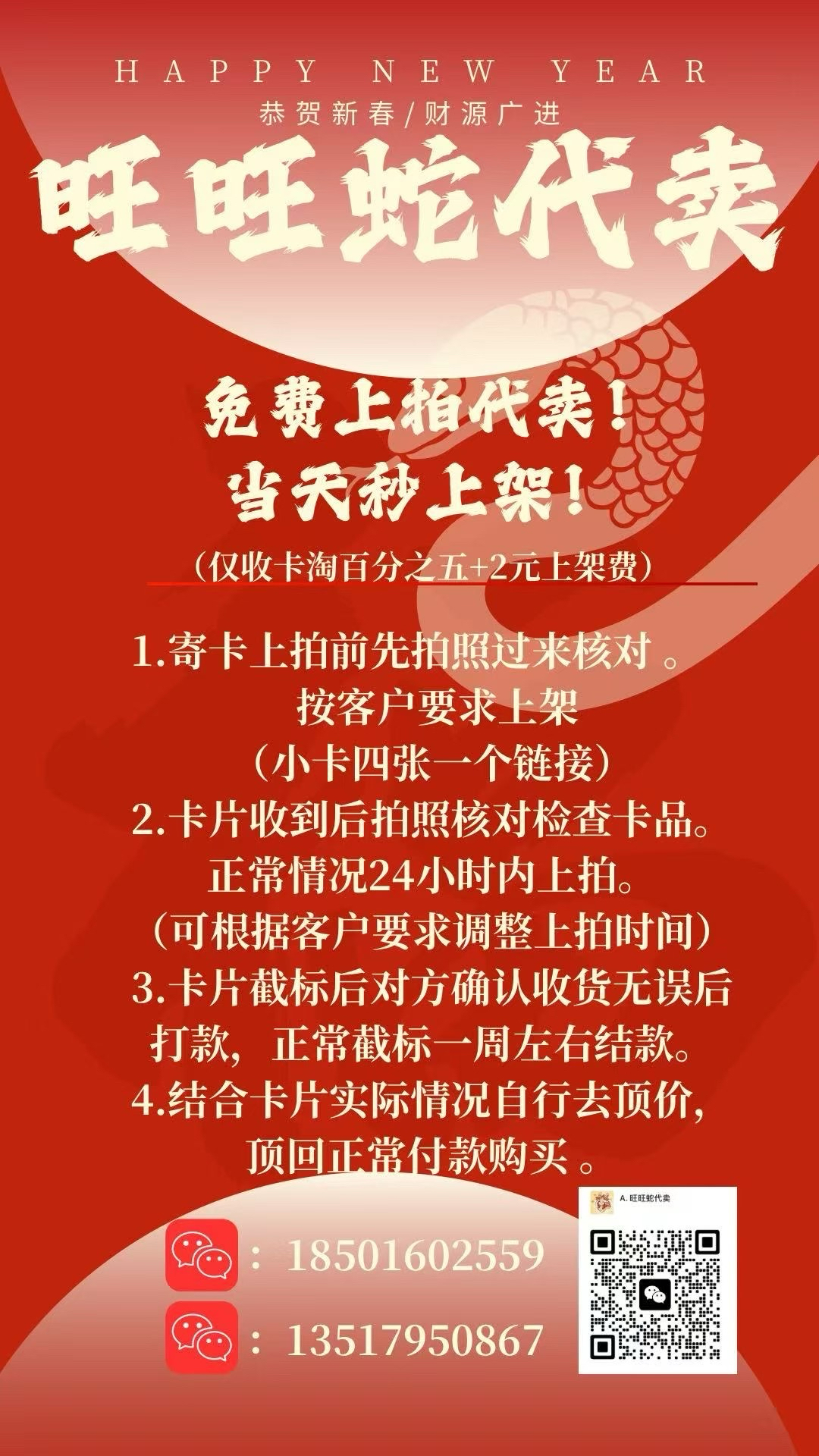 【旺旺蛇代卖】无预付低至5%(含卡淘手续费)本店承接代卖,专业服务流程,结款及时准确。 服务咨询请添加客服微信 18501602559 竞拍前请认真阅读本店拍卖规则  本店一律不接受任何因买家个人原因产生的私下退单协商,不付款默认等待系统关单。