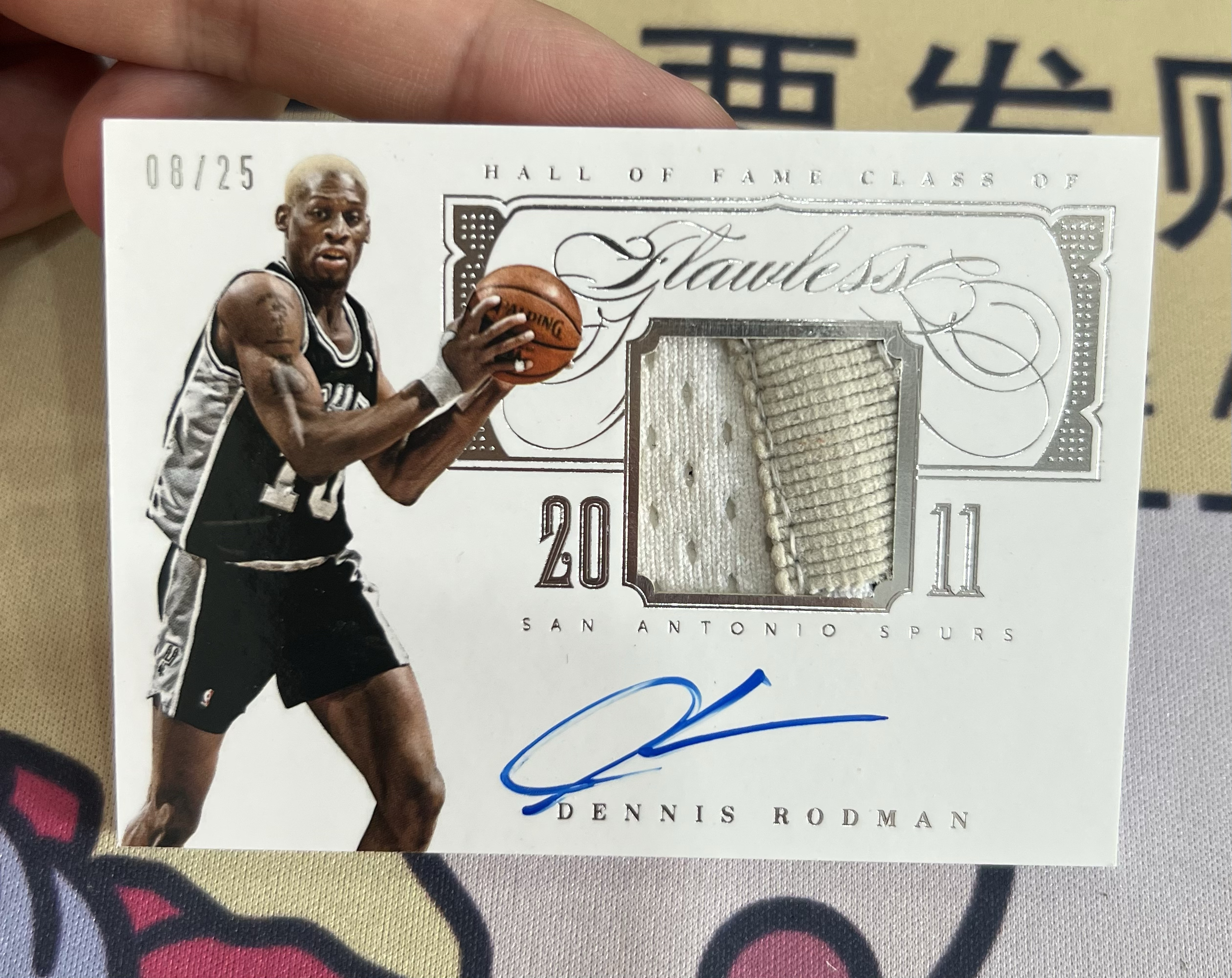 13-14 FLAWLESS DENNIS RODMAN 手提顶级大HIT 2011年入选名人堂签 丹尼斯 罗德曼 8/25编 签字 卡签 双色球衣PATCH 生涯数据荣耀时刻 大比例乔丹皮蓬瑕疵如图