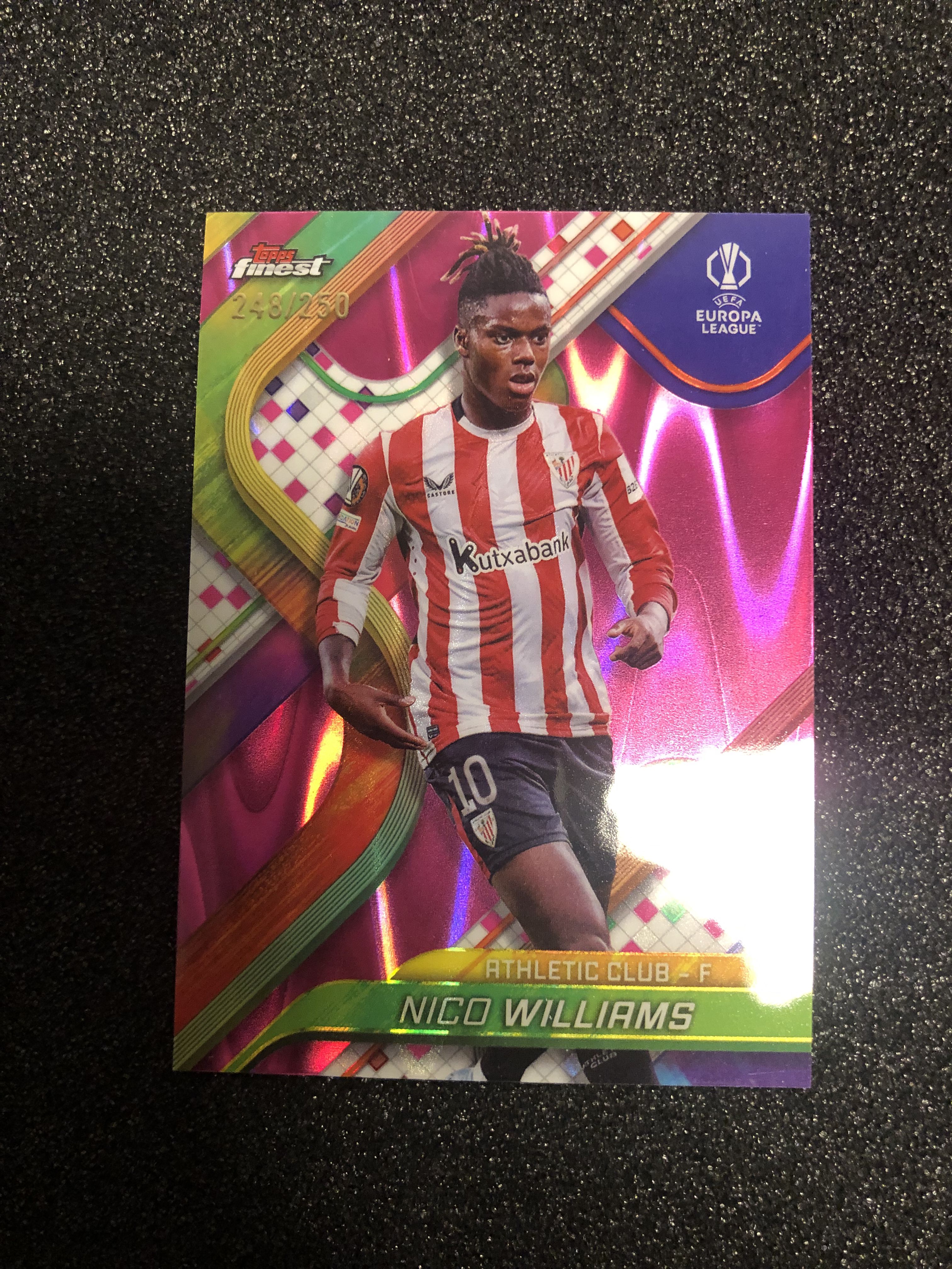 2024-25 Topps Finest Nico Williams 欧战finest 尼科-威廉姆斯 西班牙 毕尔巴鄂竞技 250编 粉熔岩折 248/250 卡品如图 凑套收藏必备