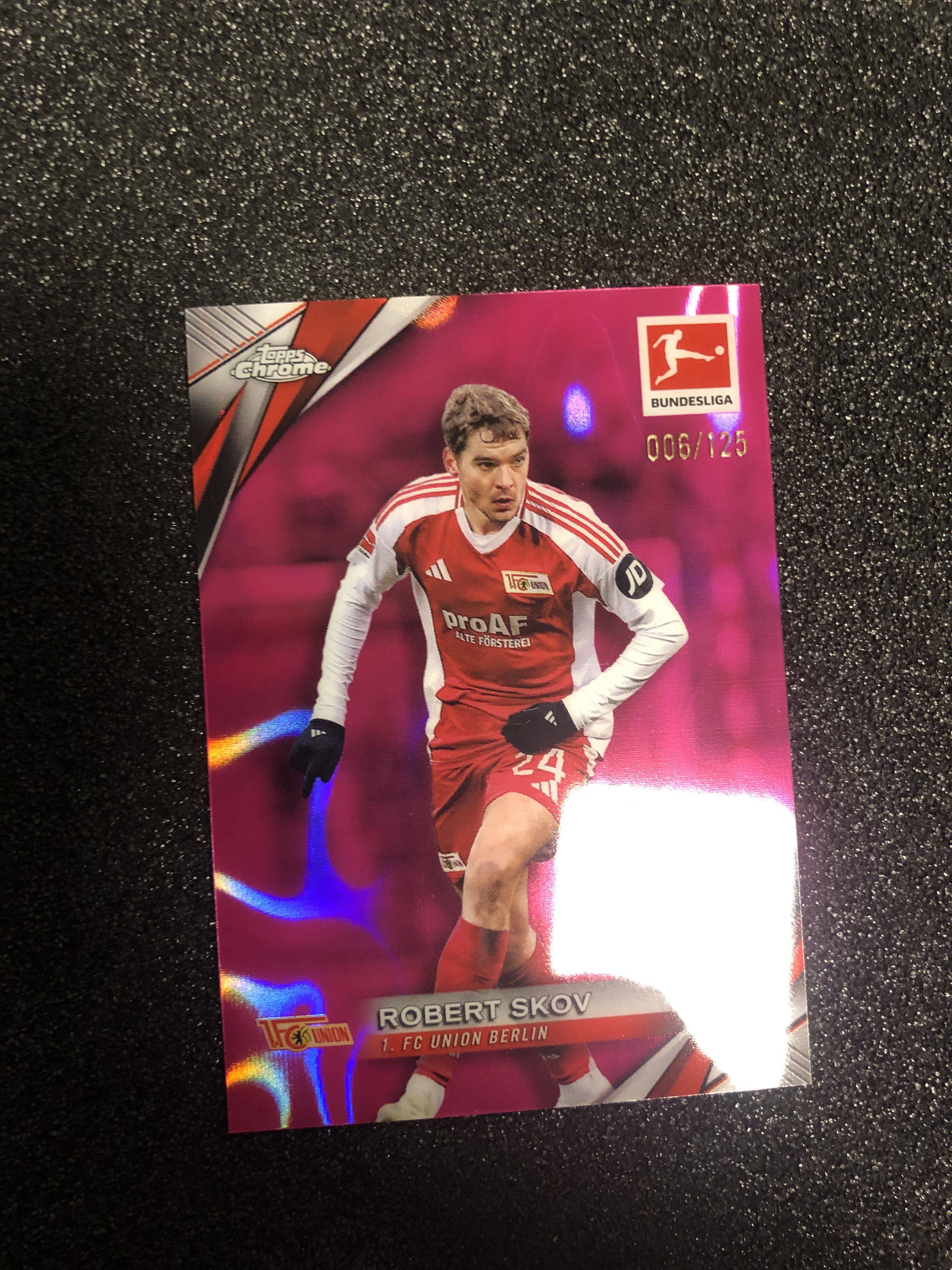 2024-25 Topps Chrome Robert Skov 德甲tc 罗伯特-斯科夫 丹麦 柏林联合 125编 洋红熔岩折 006/125 卡品如图 凑套收藏必备