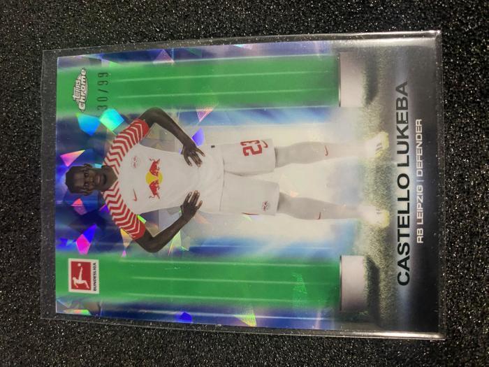2023-24 Topps Chrome Castello Lukeba 德甲tc 蓝宝石 光束特卡 卢克巴 莱比锡 法国 绿碎冰折 99编 30/99 卡品如图 凑套收藏必备