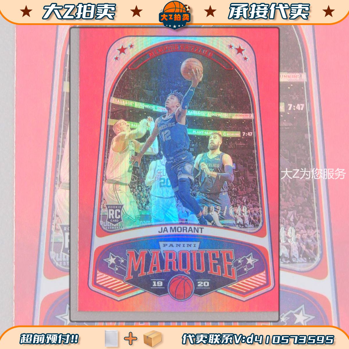 2019-20 Panini Chronicles Ja Morant RC (大Z拍卖0手续) ZD36 贾莫兰特 新秀 灰熊 编年史 凑套 实卡超美 收藏必备 149编 红折