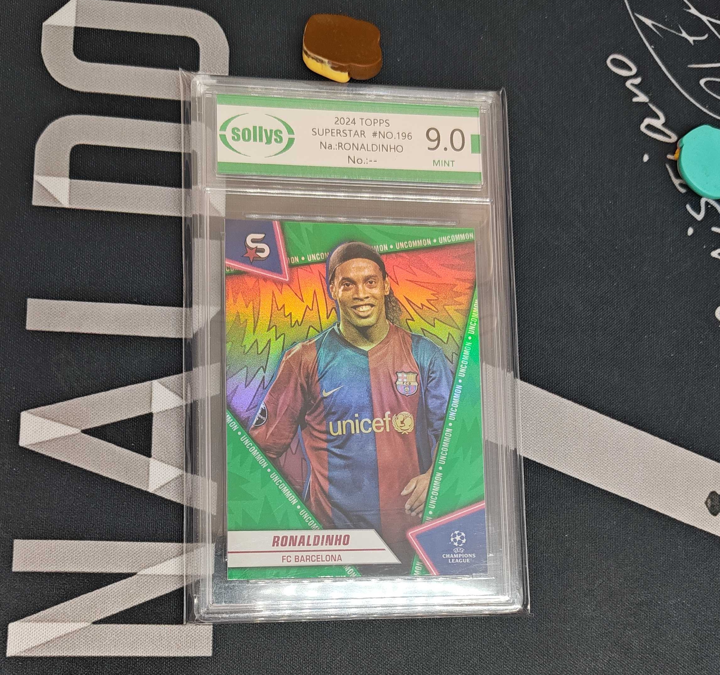 2024 Topps super stars Ronaldinho 巴萨 罗那尔迪尼奥 小罗 超巨 绿平行特卡 折射 英国阳光 SOLLYS评级卡 瑕疵售出不退