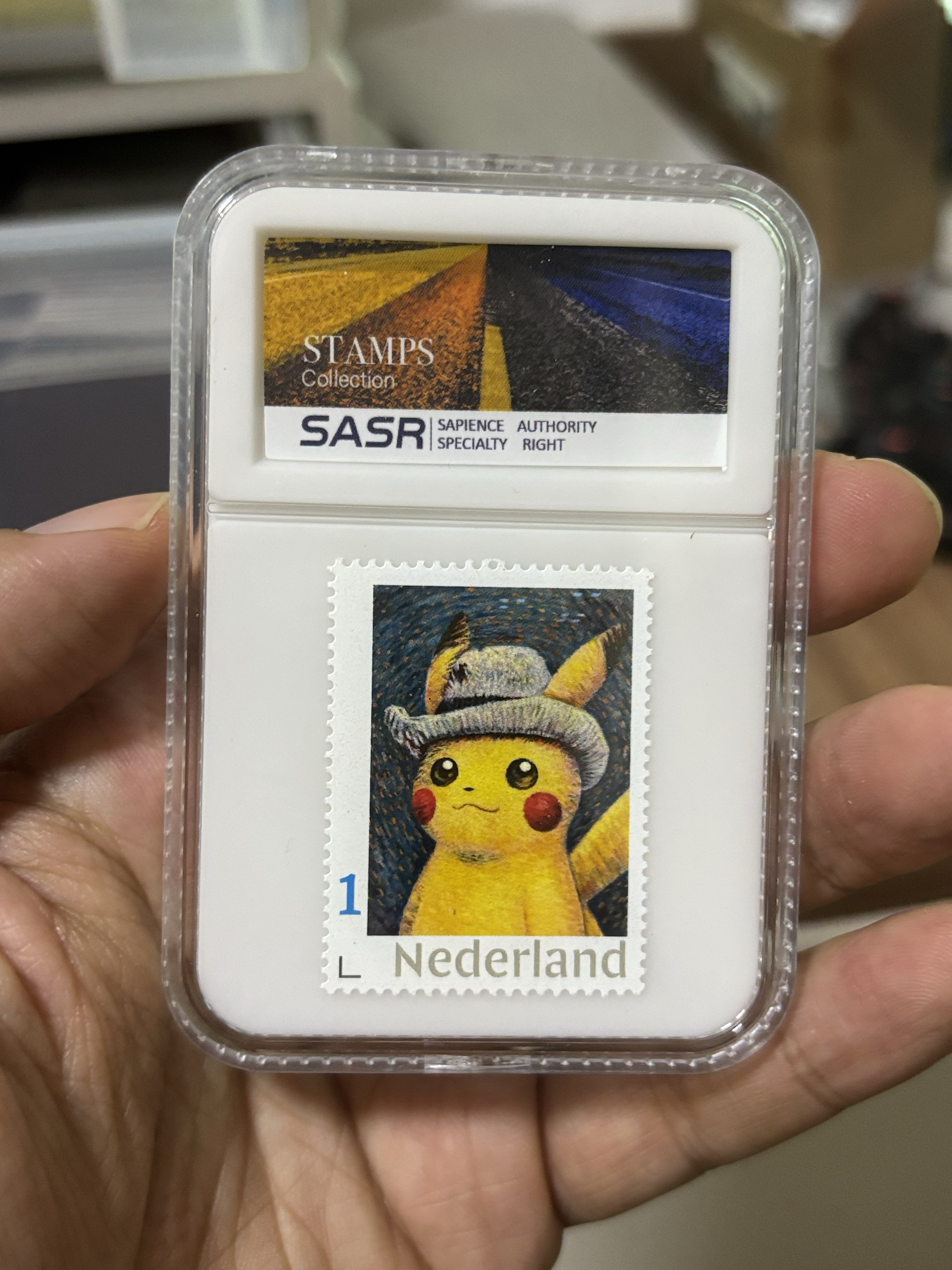 2023 Pokemon TCG 皮卡丘梵高联动 荷兰邮政发行 en 皮卡丘纪念邮票 梵高联动 博物馆限定 市面少见宝可梦收藏 保真送保护壳