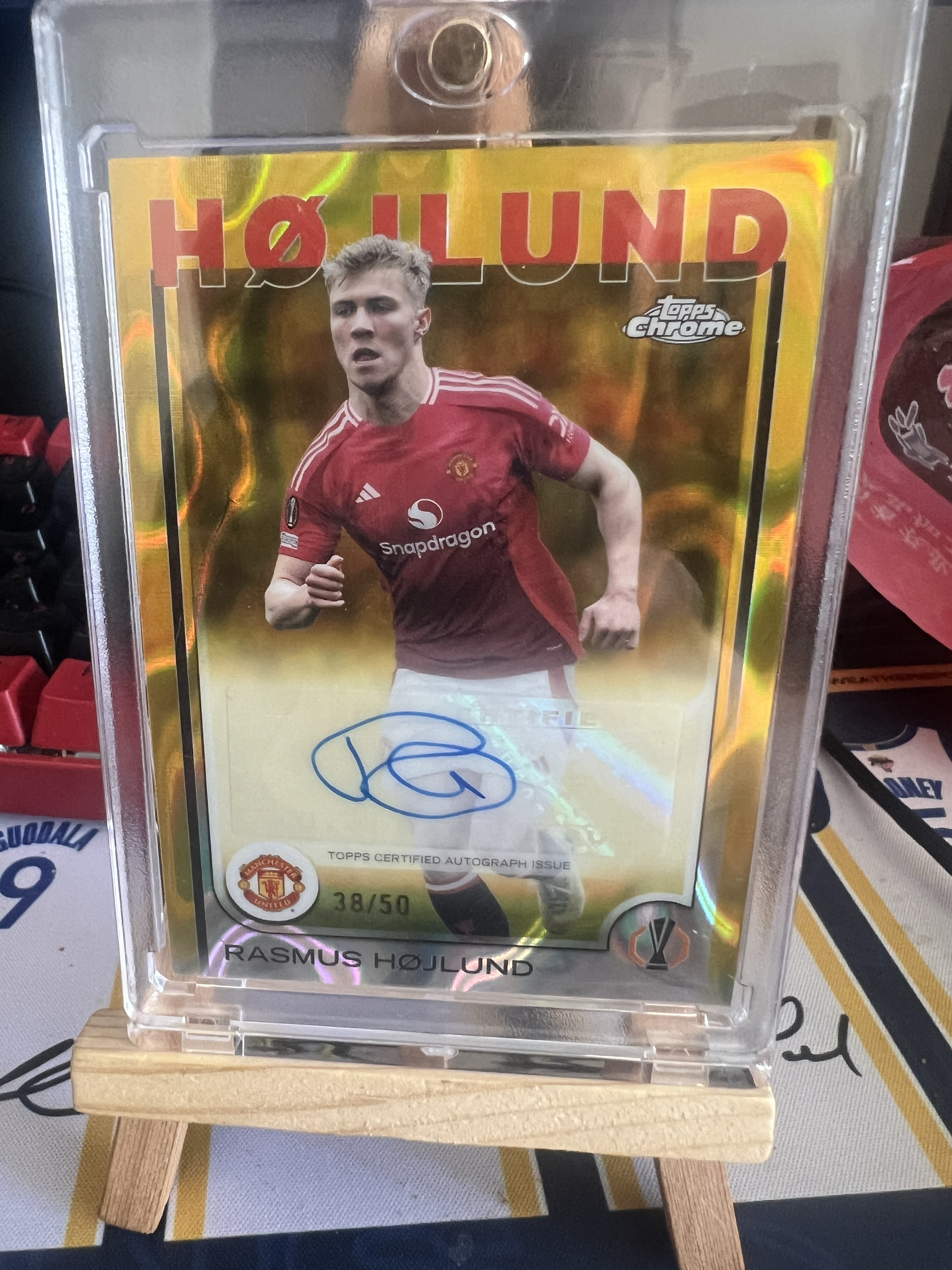 2024-25 Topps Chrome hojlund 欧冠 丹麦 霍伊伦德 曼联 金折 签字 50编