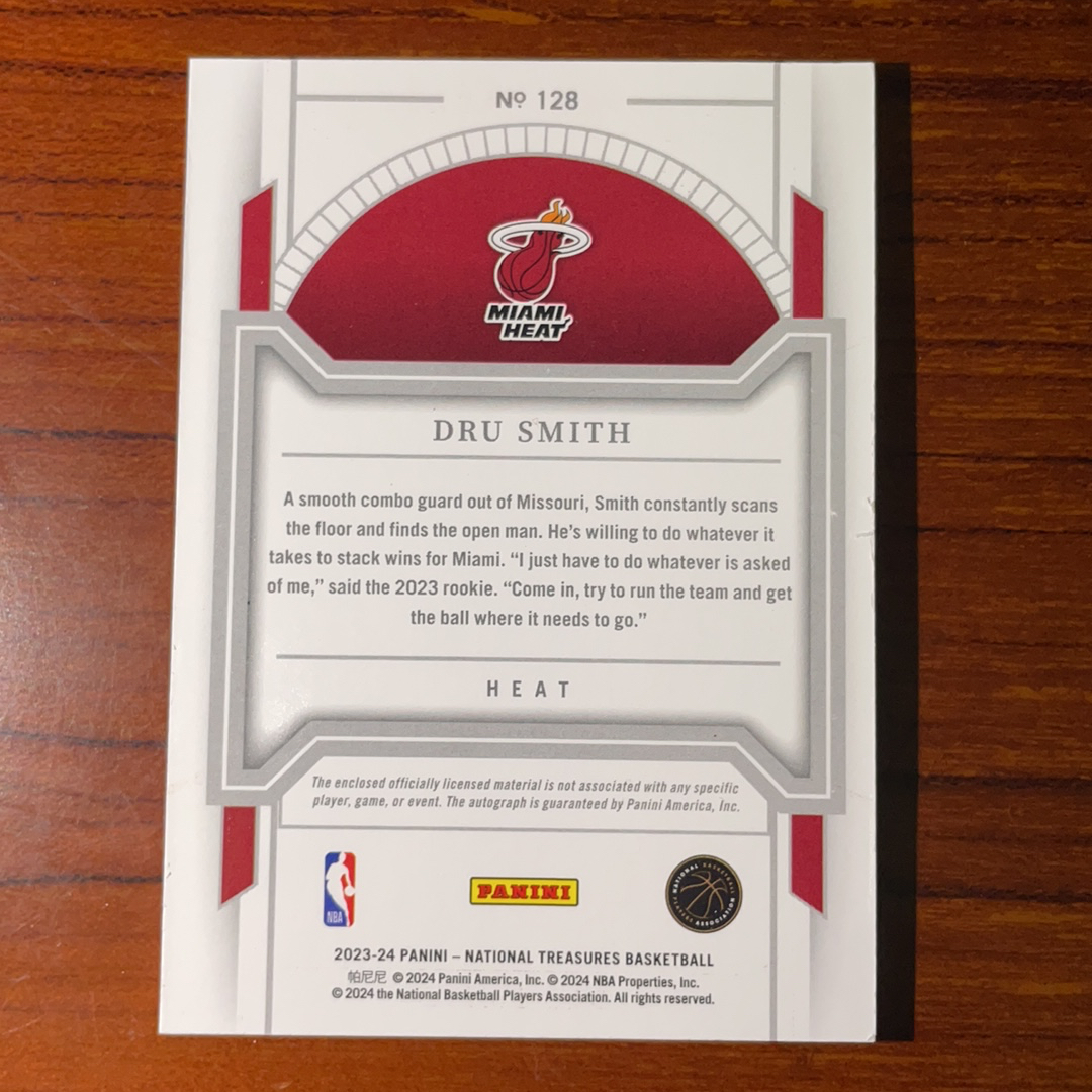 2023-24 Panini National Treasures Dru Smith RC 【克里斯拍卖】国宝 热火队 新秀 RC 德鲁 史密斯 RPA 球衣 物料 切割 签名 卡签 签字 75编