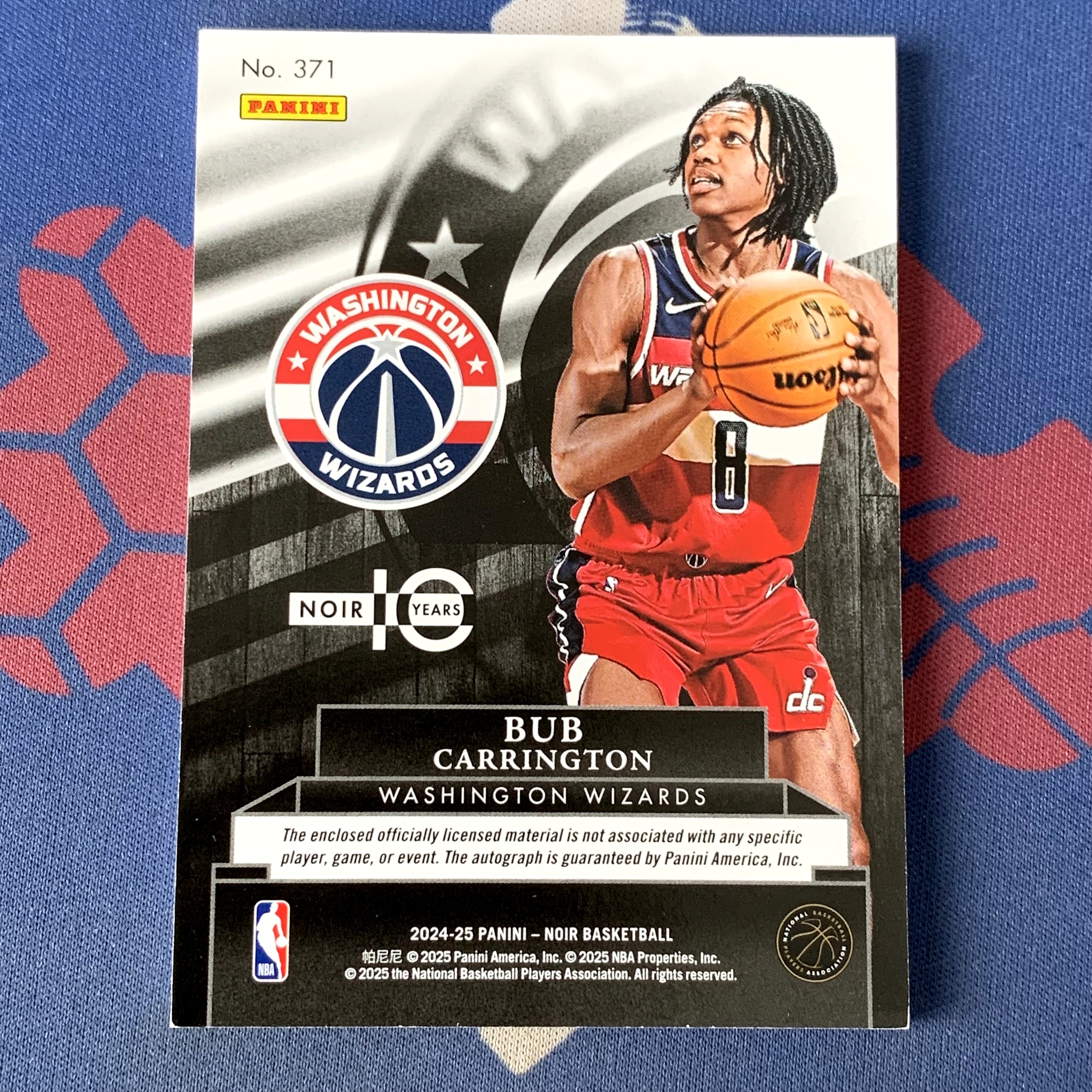 2024-25 Panini Noir Bub Carrington 【海宝】奇才 新秀RC 卡林顿 99编 彩色版 暴力RPA签字卡 卡签 未来可期  收藏必备【dzb】