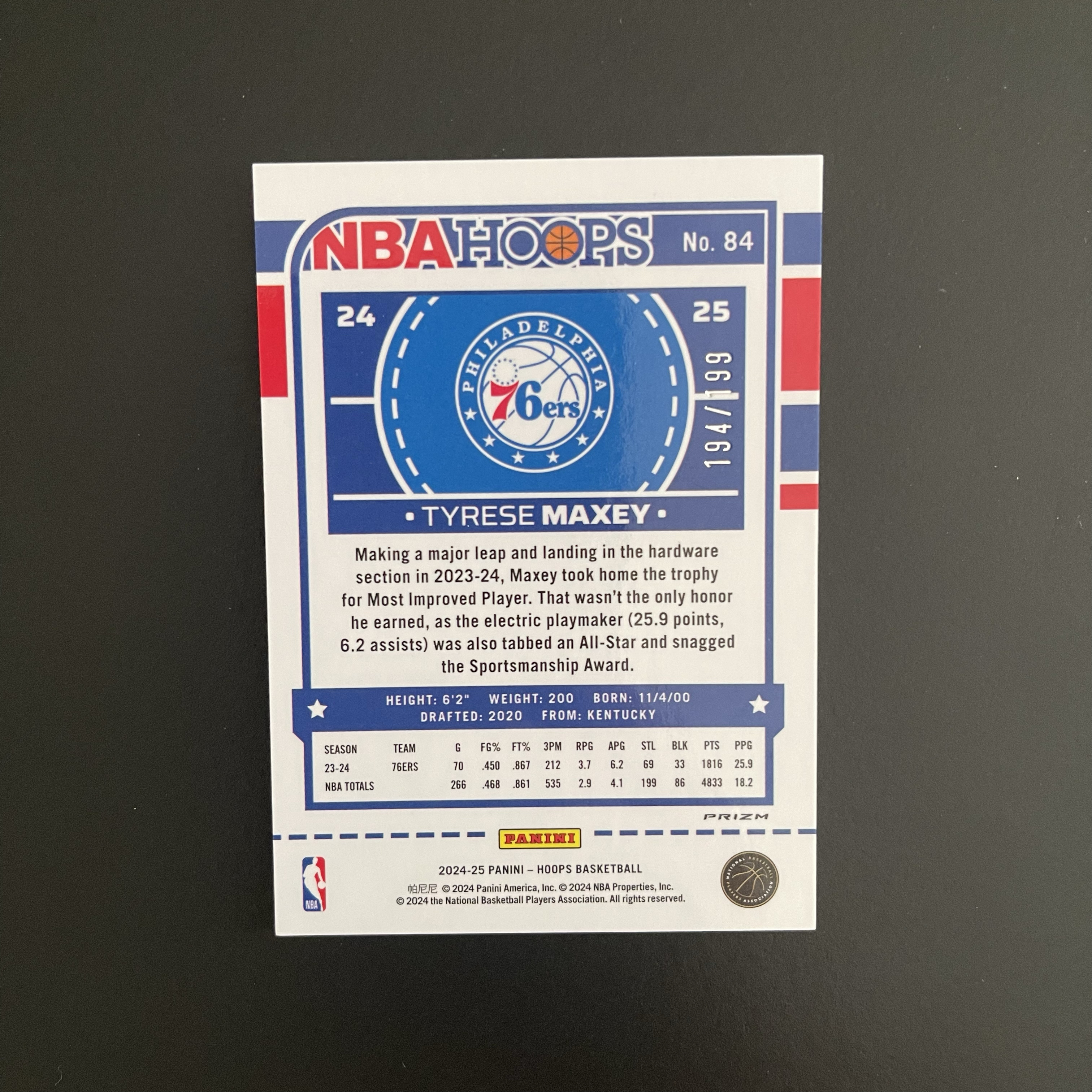 2024-25 Panini hoops Tyrese Maxey Hoops 泰雷塞 马克西 76人 橙折 194/199编 专收凑套必备 卡品如图