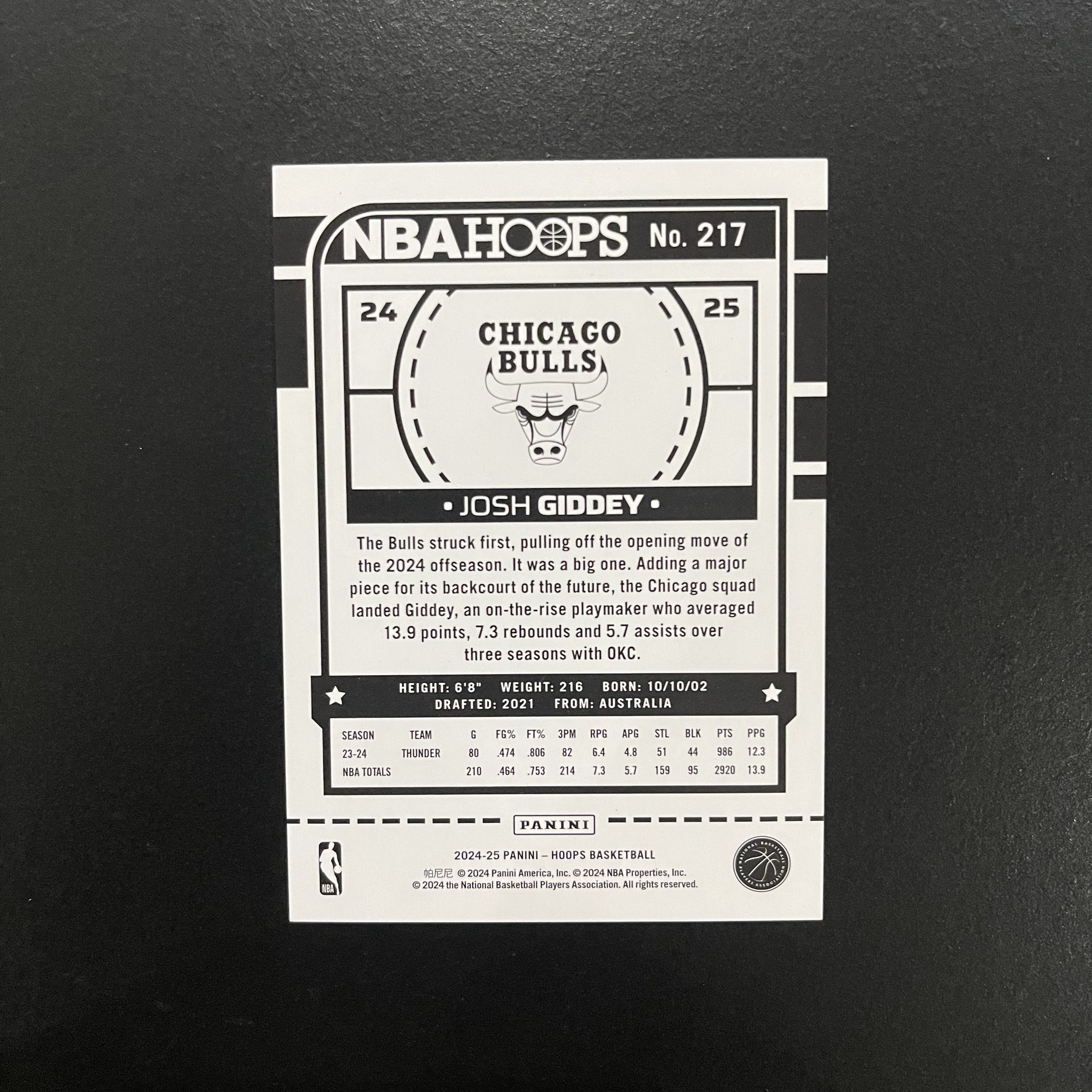 2024-25 Panini NBA Hoops Josh Giddey Hoops 约什 吉迪 公牛 147/199编 银折 折射 专收凑套必备 卡品如图