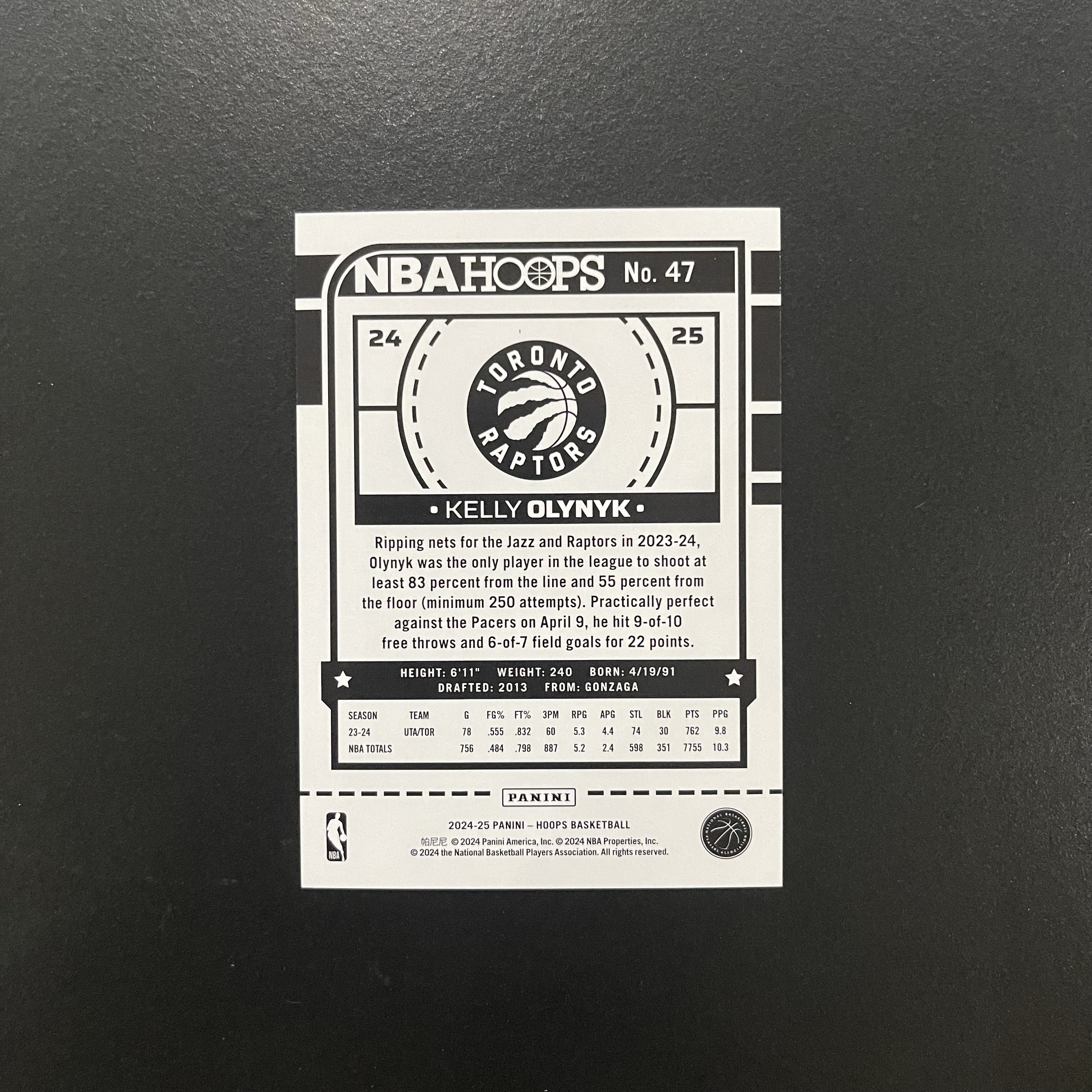 2024-25 Panini NBA Hoops Kelly Olynyk Hoops 凯利 奥利尼克 猛龙 016/199编 银折 折射 专收凑套必备 卡品如图