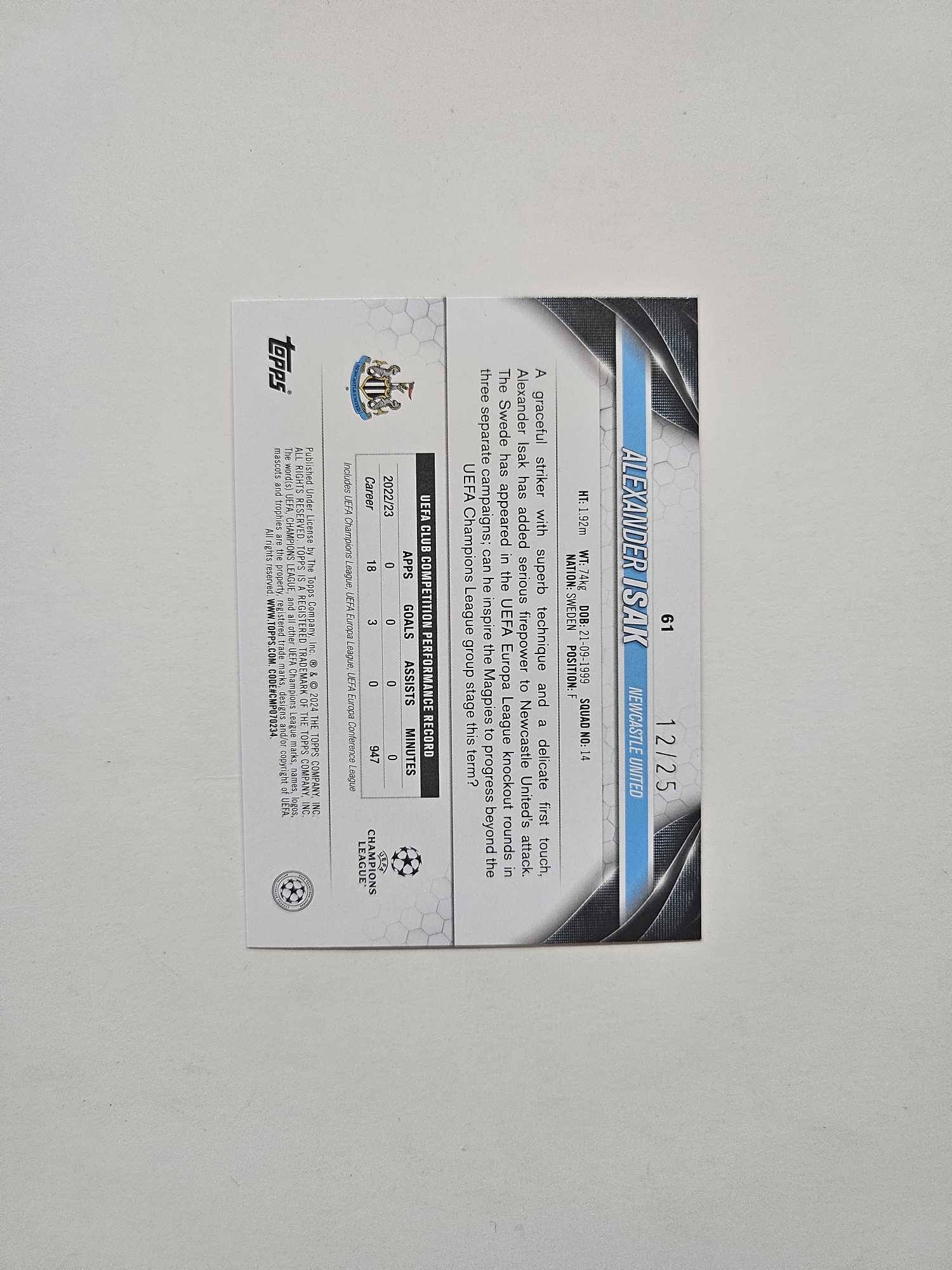 2024 Topps UEFA Champions League Alexander Isak 伊萨克 25编橙折 低编 利物浦 收藏佳品