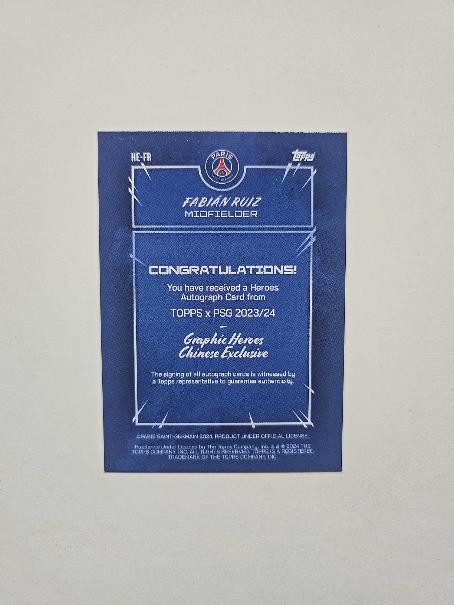 2024 Topps 巴黎 Fabian Ruiz 法比安 鲁伊斯 漫画签字 巴黎圣日耳曼 法国 顶级中场 法比安鲁伊斯