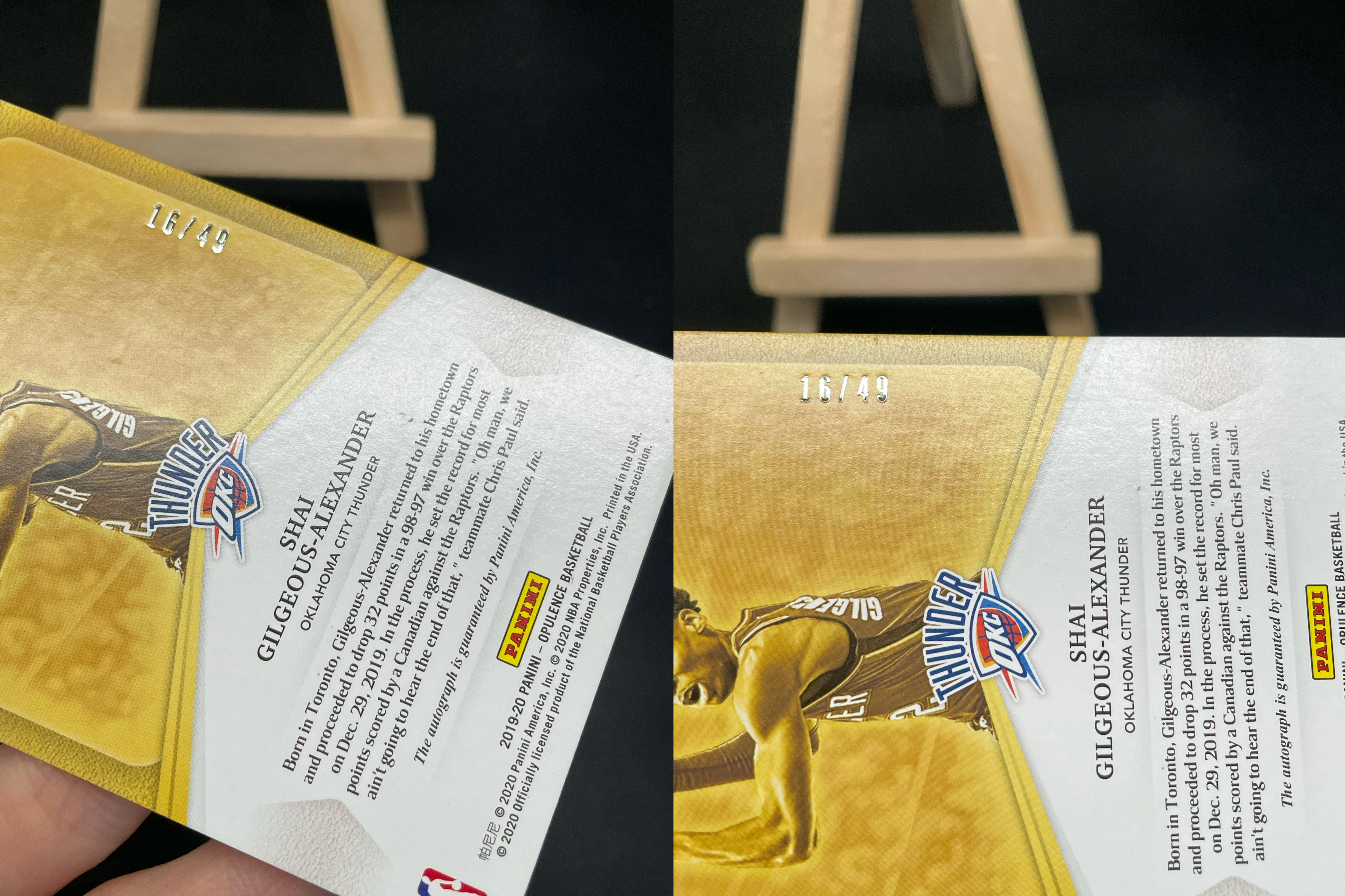 2019-20 Panini Opulence Shai Gilgeous-Alexander 【白鸟代卖 寄付特快】金书 亚历山大 SGA 新秀次年 /49编 签字 卡签 微瑕如图 妖妖-93
