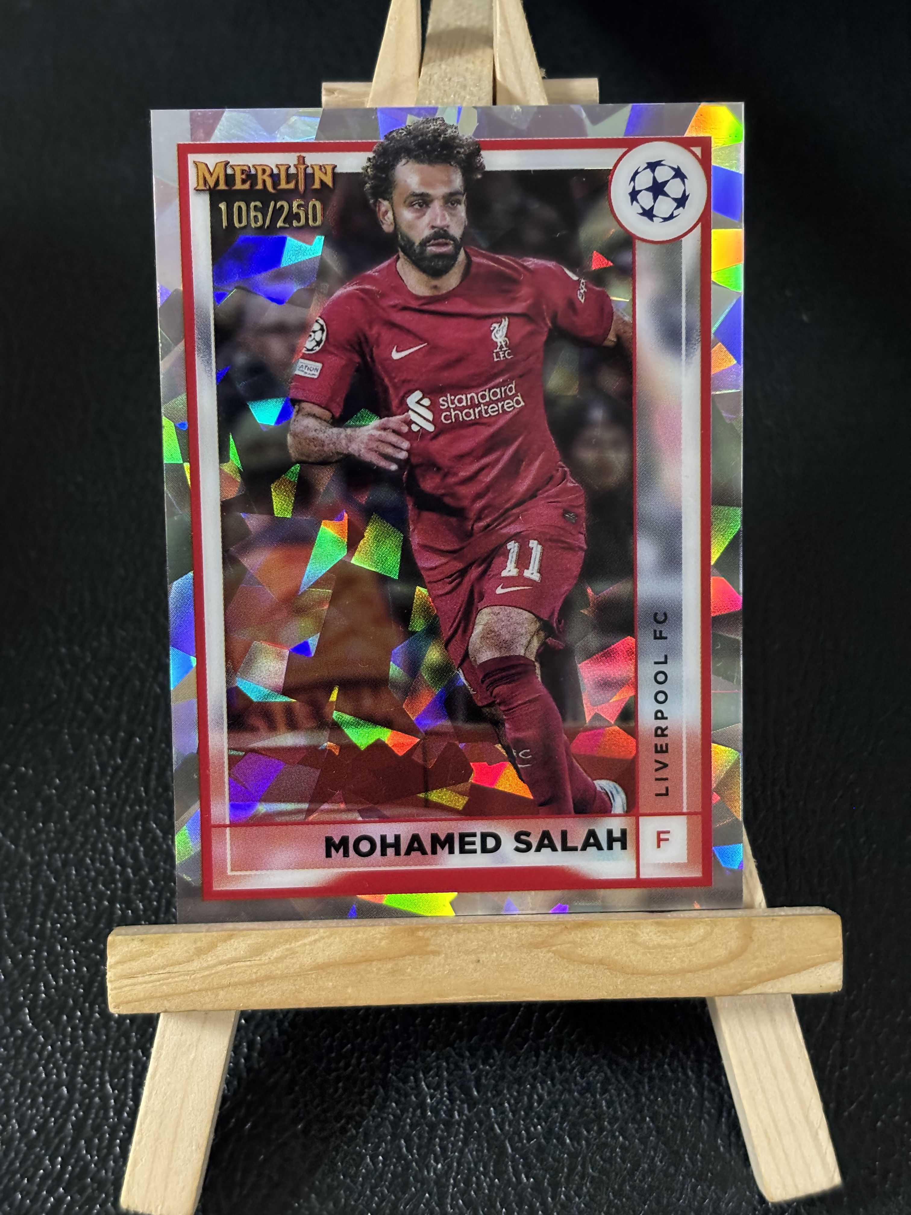 2023 Topps Merlin chrome Mohamed Salah 萨拉赫 埃及 利物浦 法老 碎冰折 250编 梅林 欧冠 银折 实卡精美 收藏必备 卡品如图 七七代卖