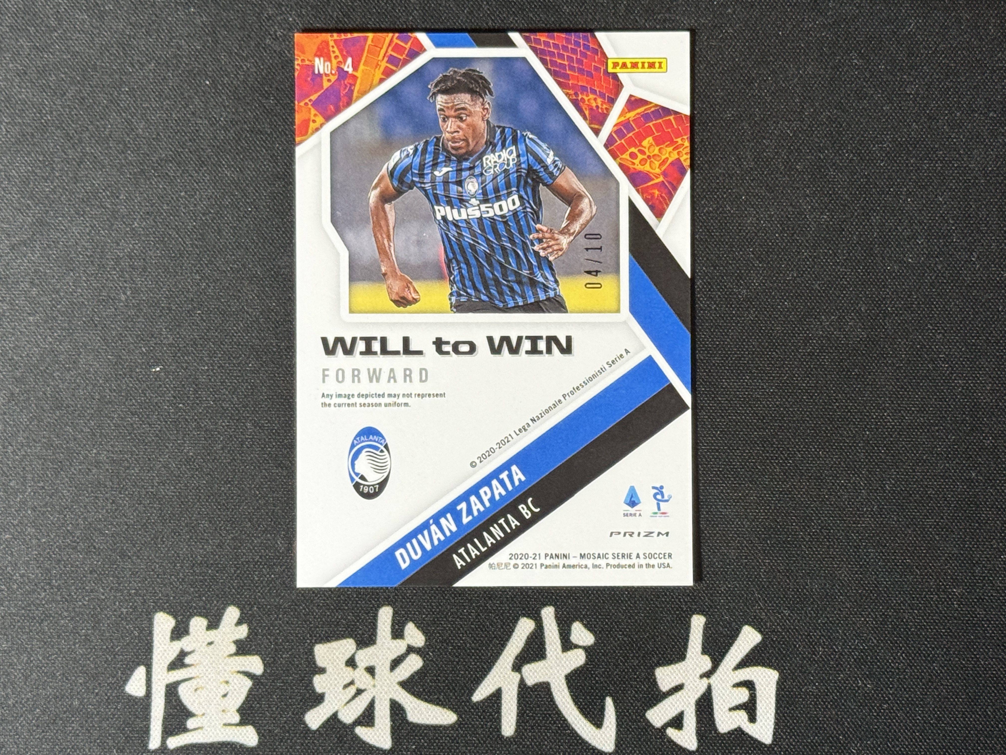 【懂球代拍】2020-21 panini 意甲马赛克mosaic 限量 10编 DUVAN ZAPATA赞帕塔 亚特兰大 WILL to WIN特卡 金马赛克折射 值得收藏 DQ064A 019