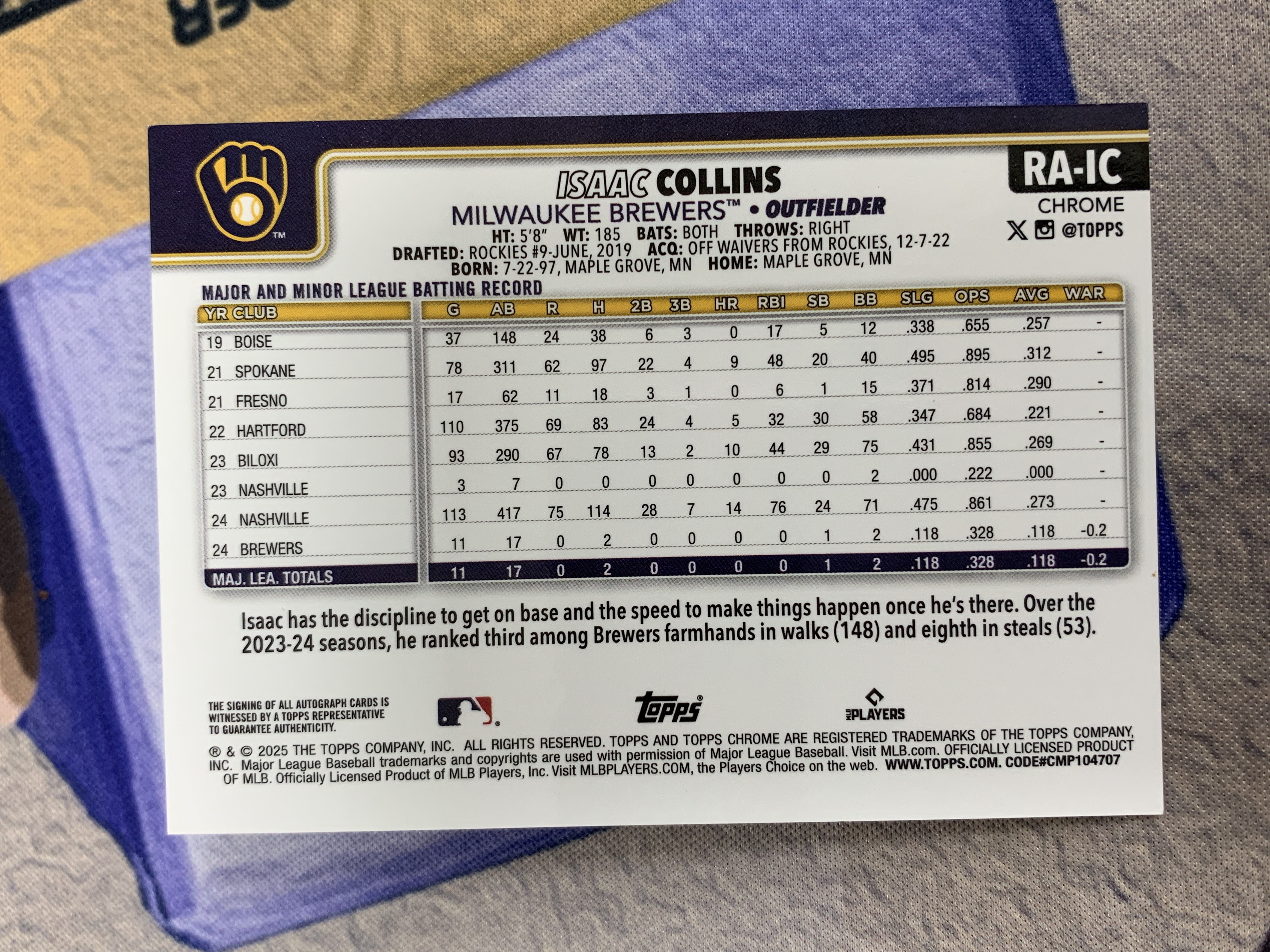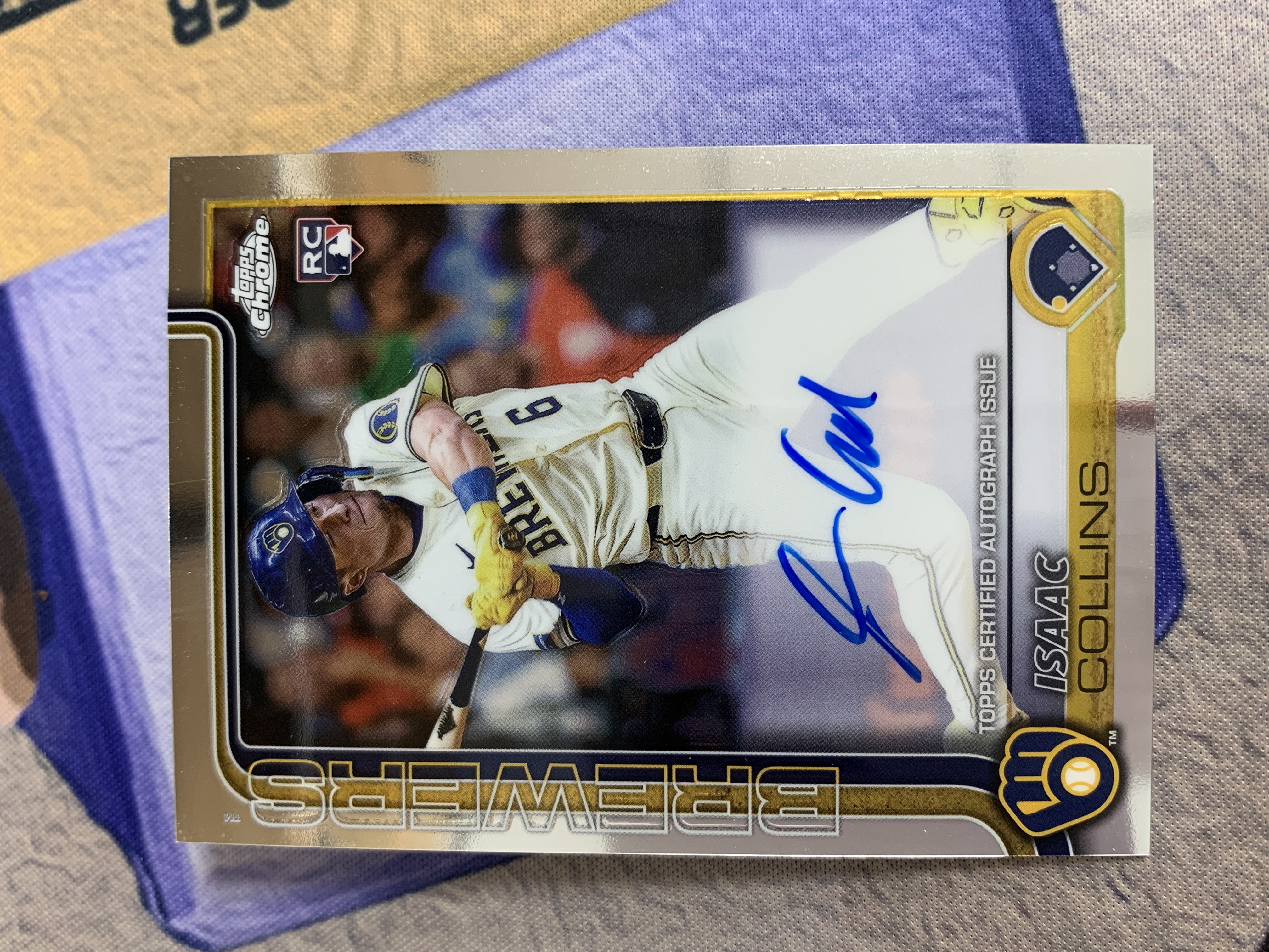 2025 Topps Chrome Isaac Collins RC 棒球 MLB 艾萨克 柯林斯 新秀RC 签字 卡签 密尔沃基酿酒人 正面轻微划痕 瑕疵如图
