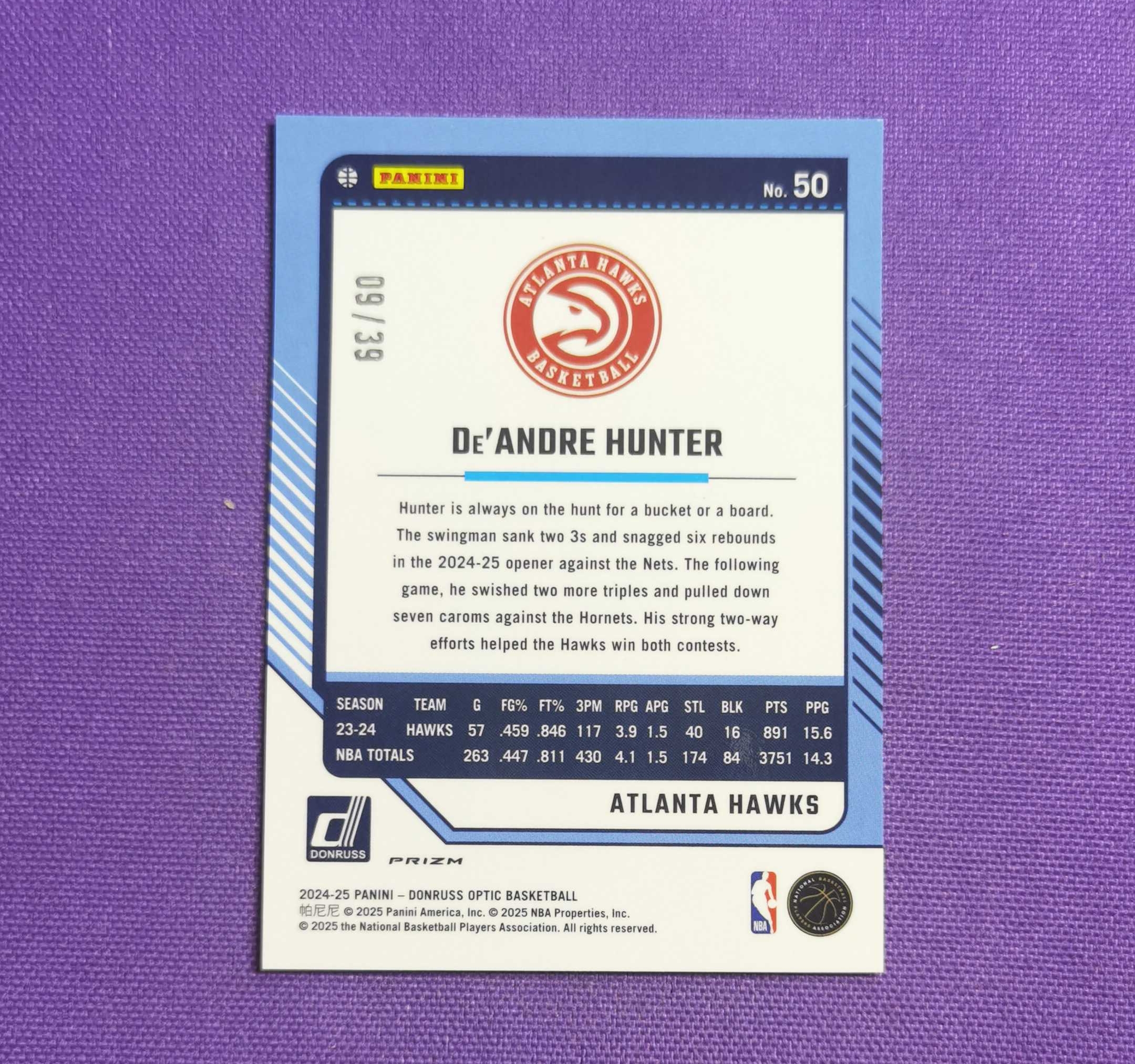 2024-25 Panini Optic De'Andre Hunter 老鹰 亨特 黑镭射 09/39编 球队核心 凑套专收必备(程序猿)