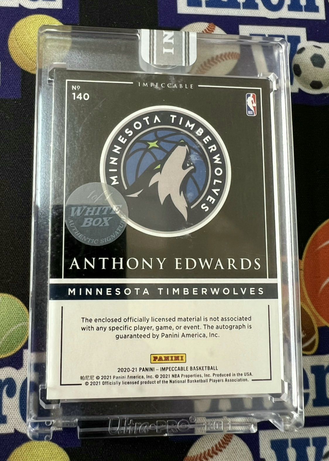 2020-21 Panini Impeccable Anthony Edwards RC 小真金系列 森林狼新秀 爱德华兹 暴力球衣切割 签字 卡签 RPA 1of1 1编1 原封砖 森林狼总冠军